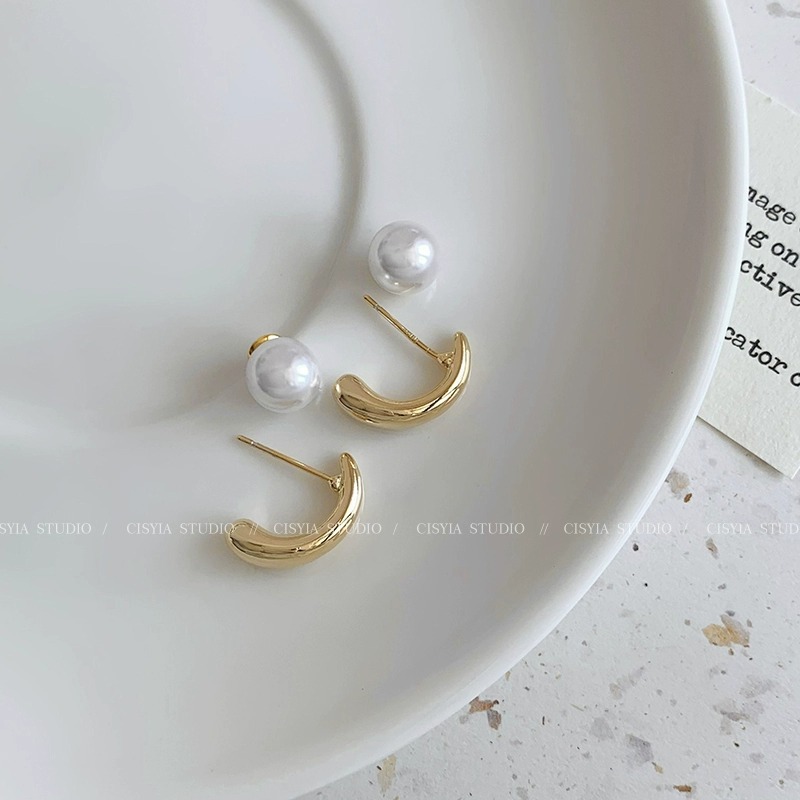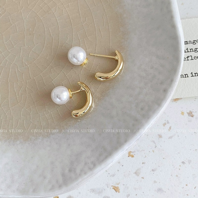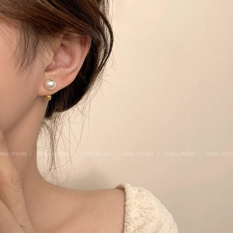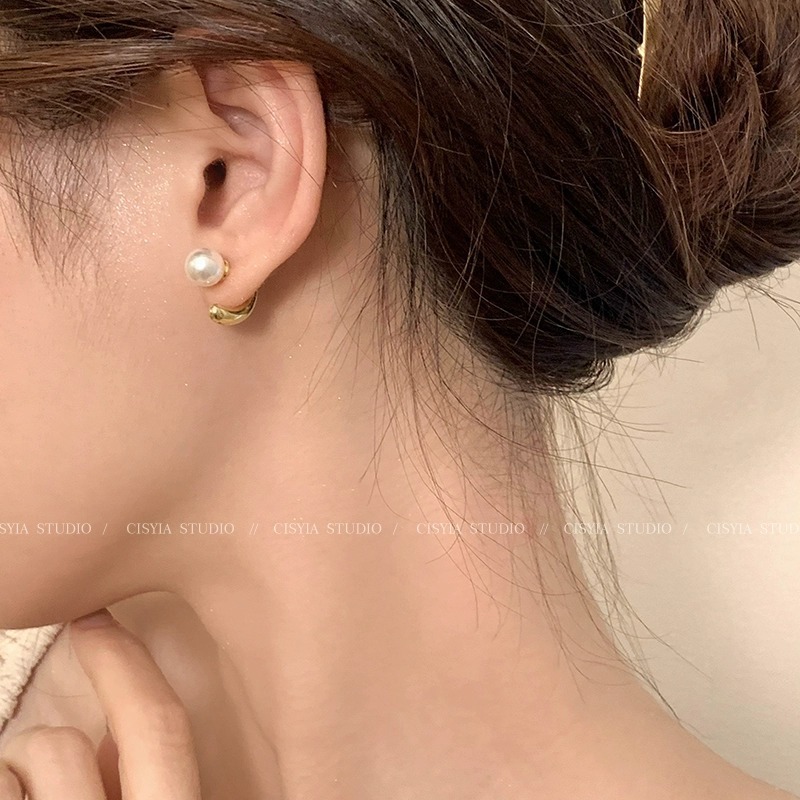 front and rear buckle pearl stud earrings