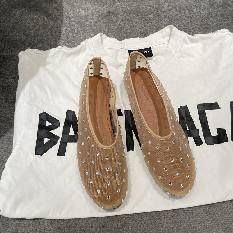 sheepskin version ~ spring/summer new fashionable round toe rhinestone mary jane shoes women's flat bottom comfort ballet dancing shoes