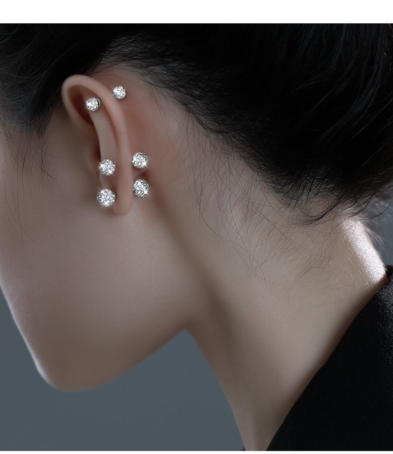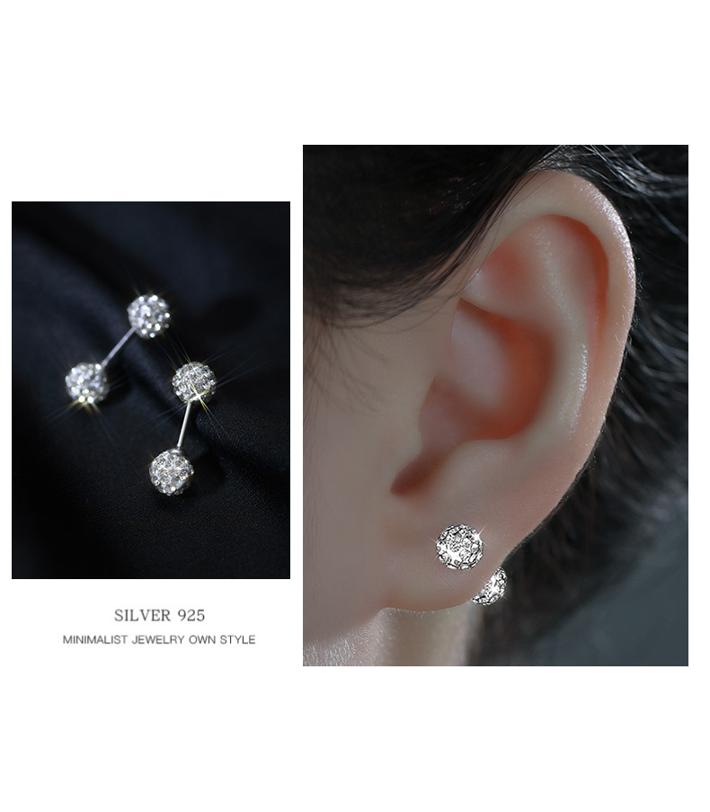 sterling silver needle stud earrings for women ear-caring ear bone stud niche high sense zircon ear bone pin diamond earrings silver earrings