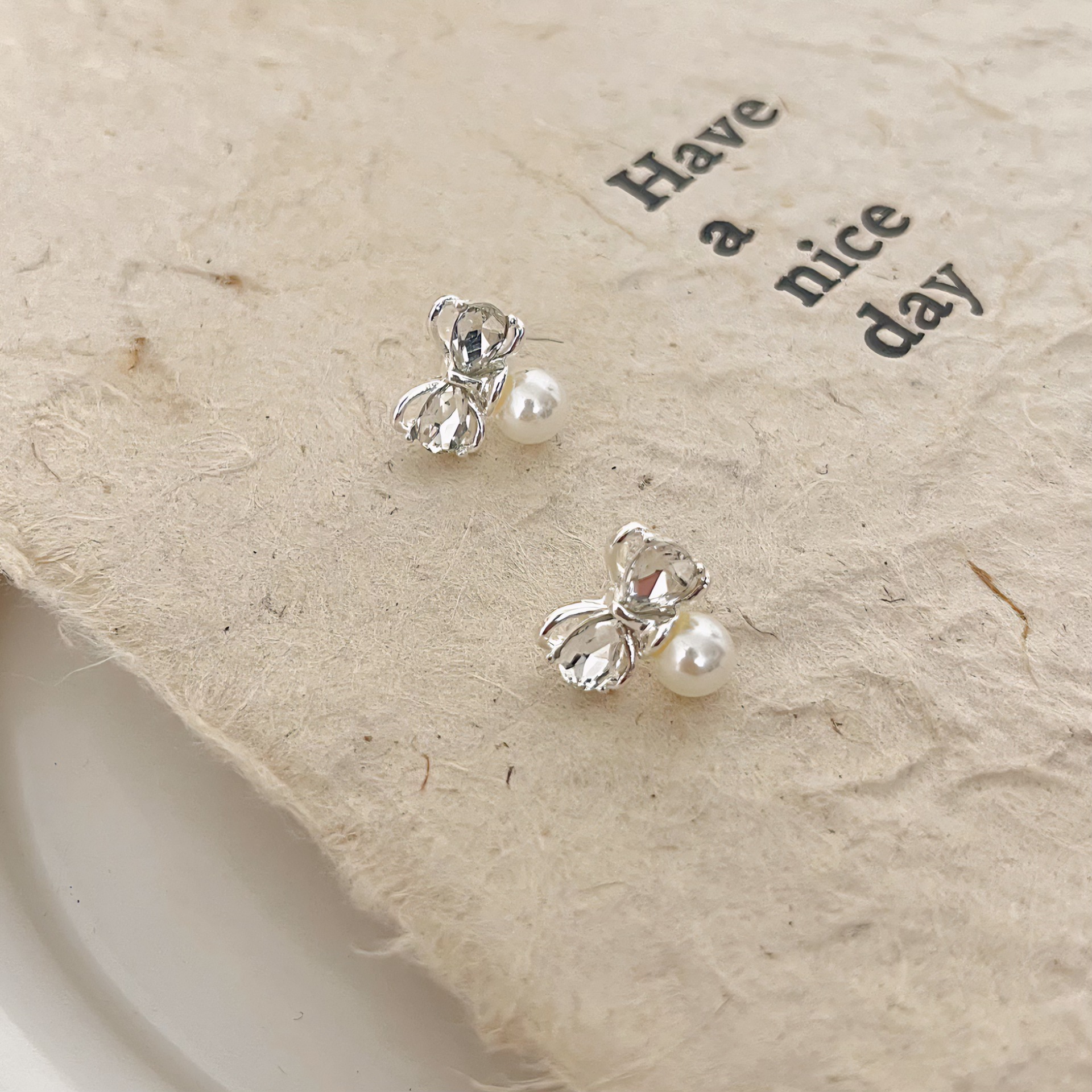 zircon bow pearl stud earrings