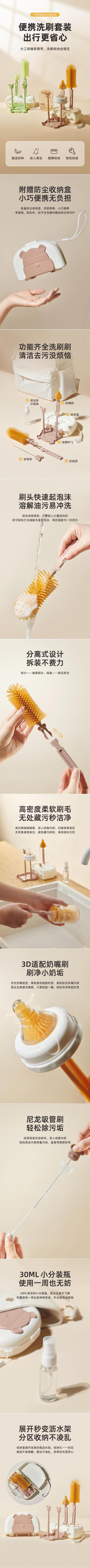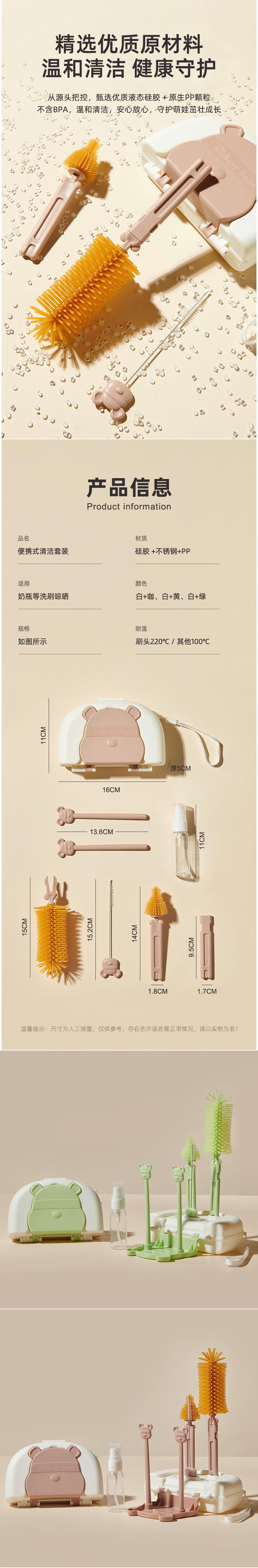 fighting bear baby silicone portable baby bottle brush set baby cleaning brush
