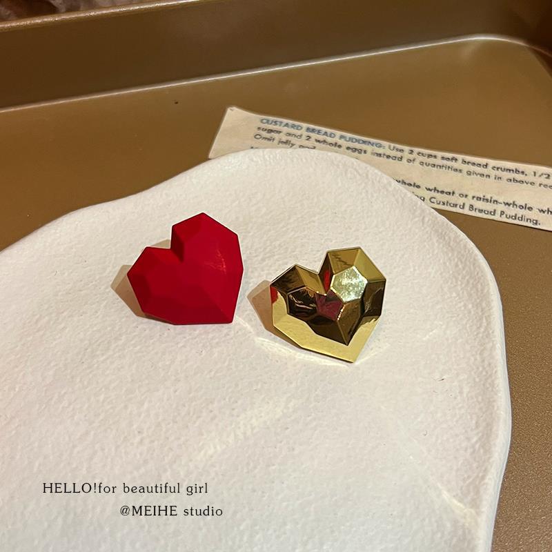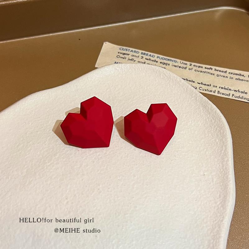 0834 red sweet cool heart 925 silver needle