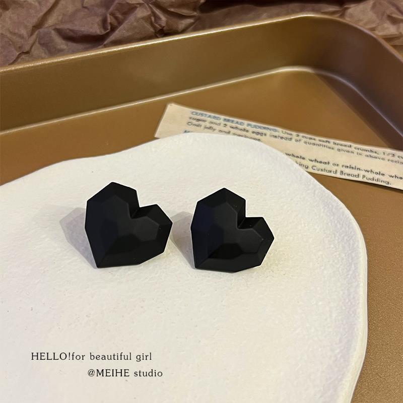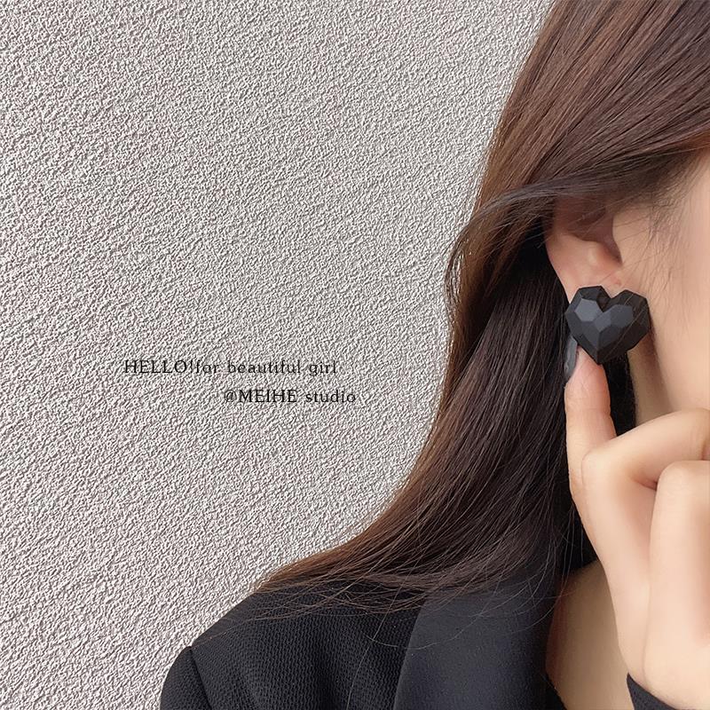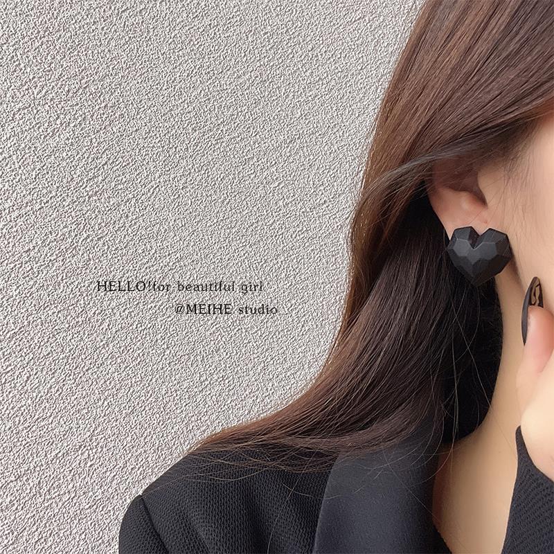 0834 black sweet cool heart 925 silver needle