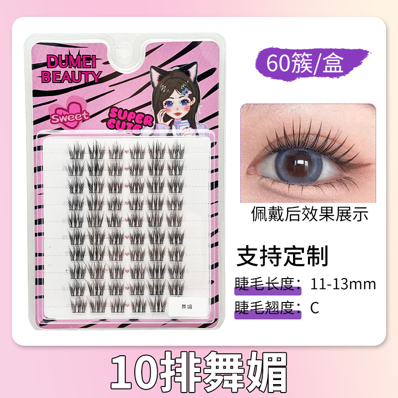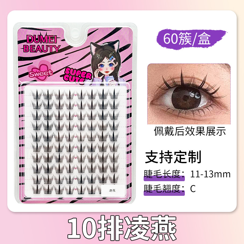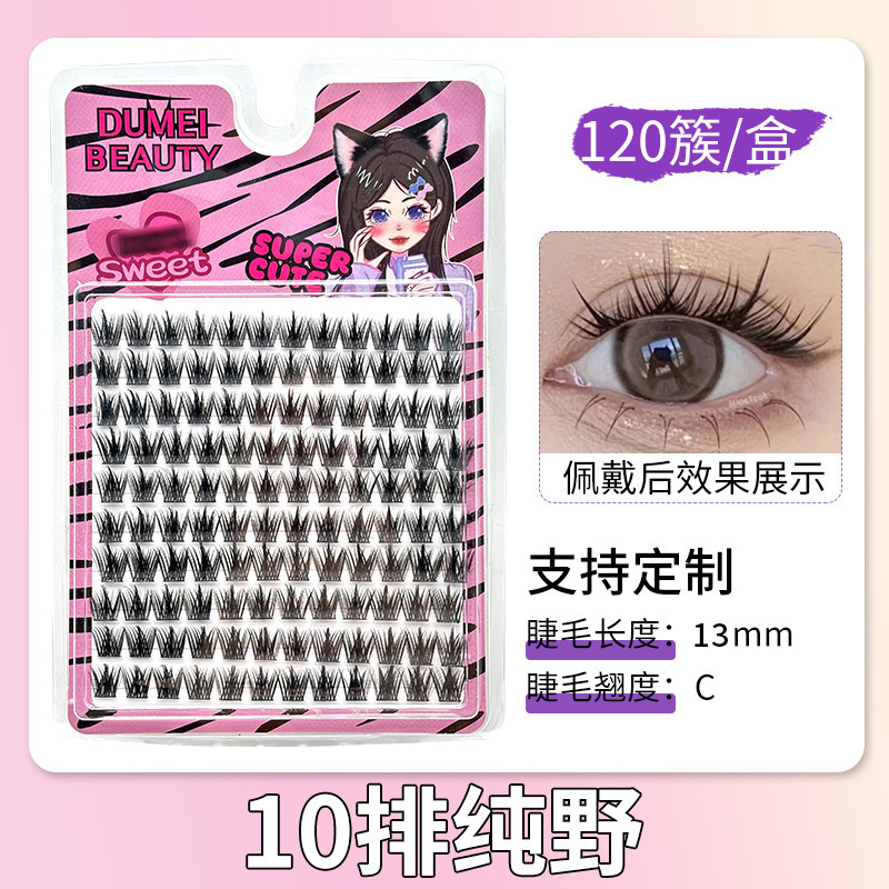 120 clusters of 10 rows of small wild cat eyelashes [6mm]]