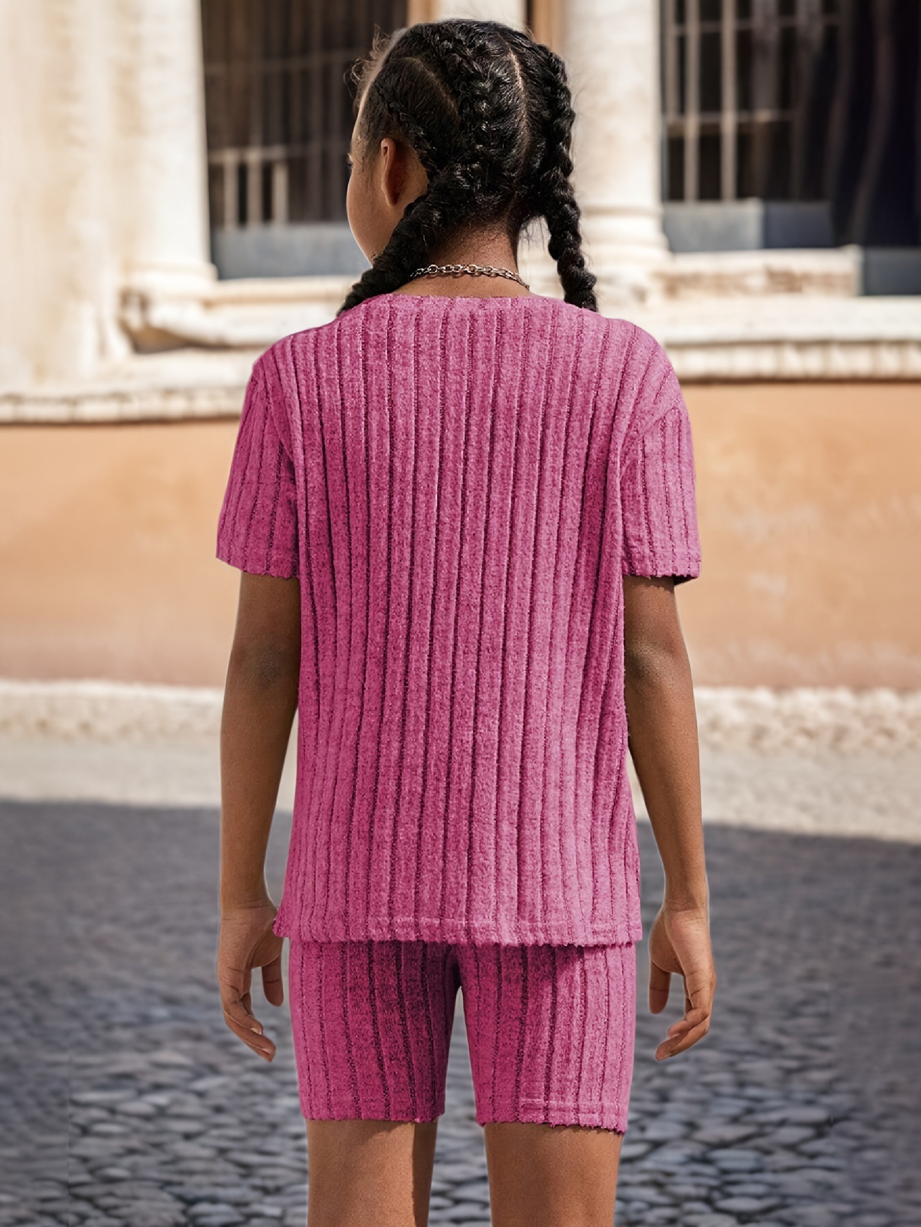 cross-border foreign trade ins girls' summer casual sports rib short-sleeved t-shirt two-piece pants suitable for 1-8 years old