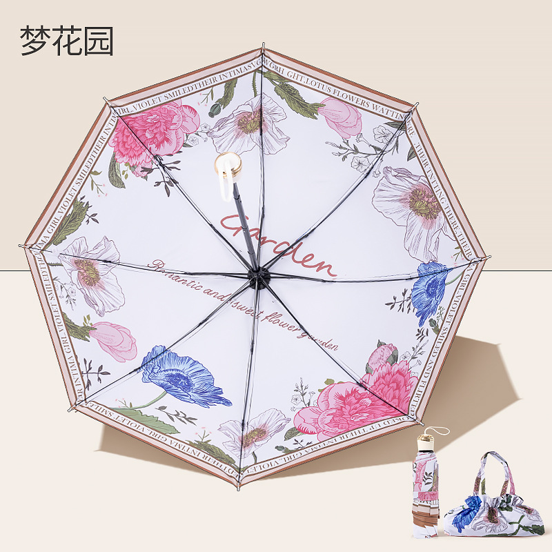 dream garden double-layer tri-fold reverse umbrella with bag