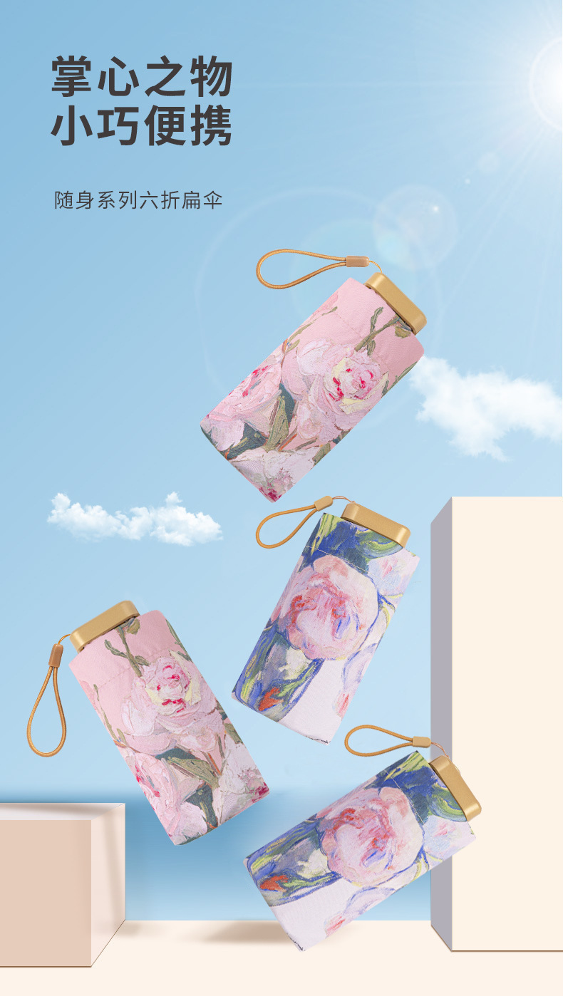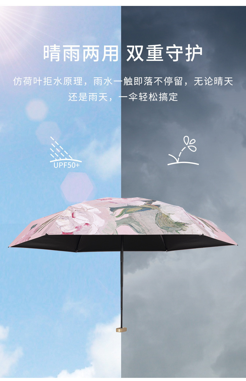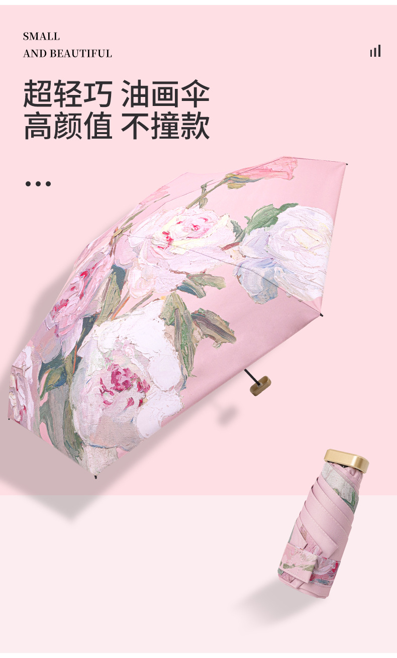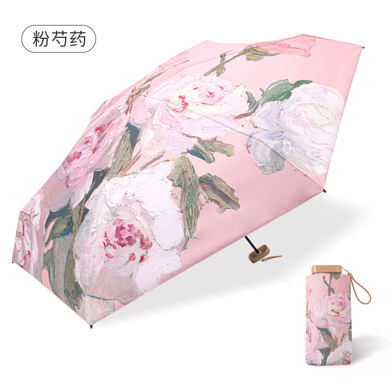 pink peony double layer three fold reverse umbrella with bag