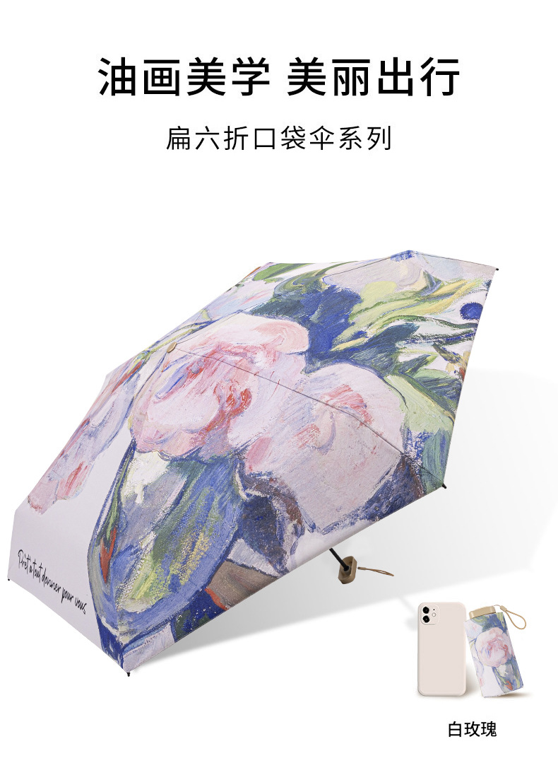 white rose double-layer tri-fold reverse umbrella with bag