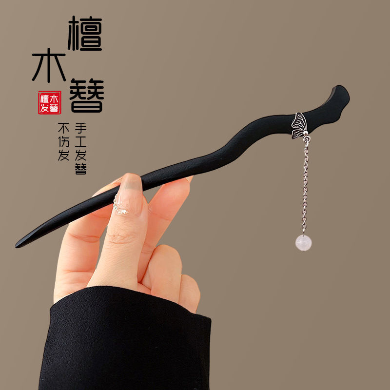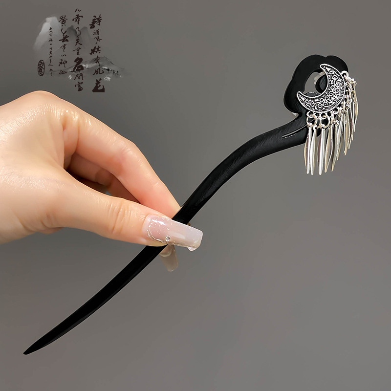 66-black wooden hairpin