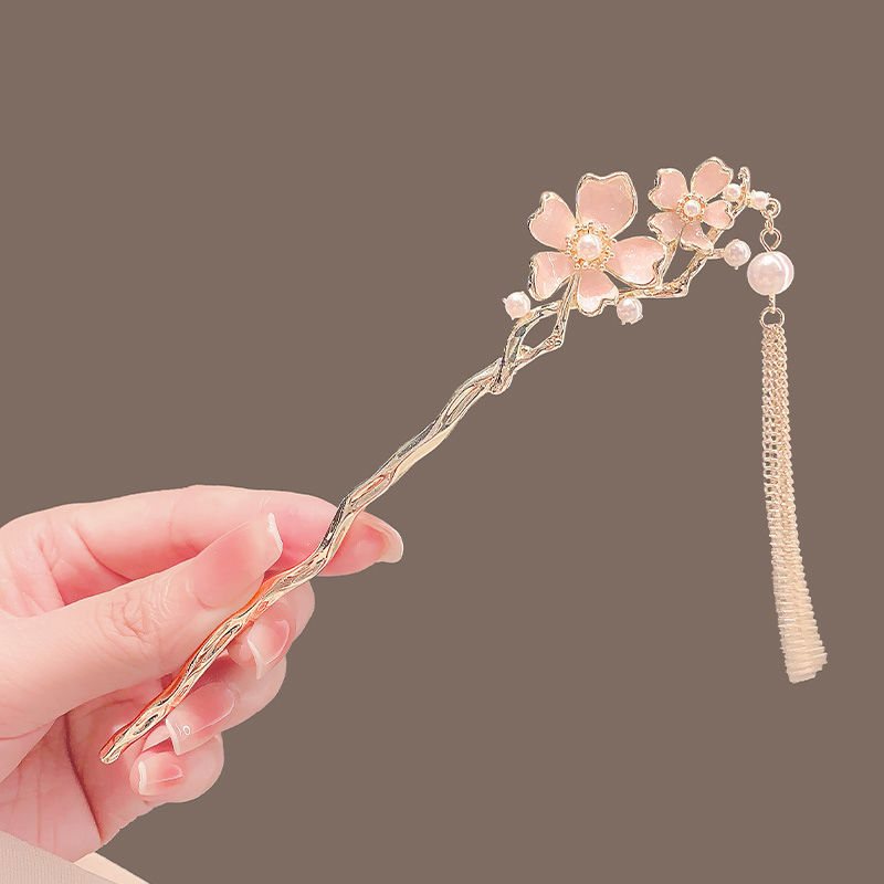10-peach blossom tassel hairpin about 17.5cm