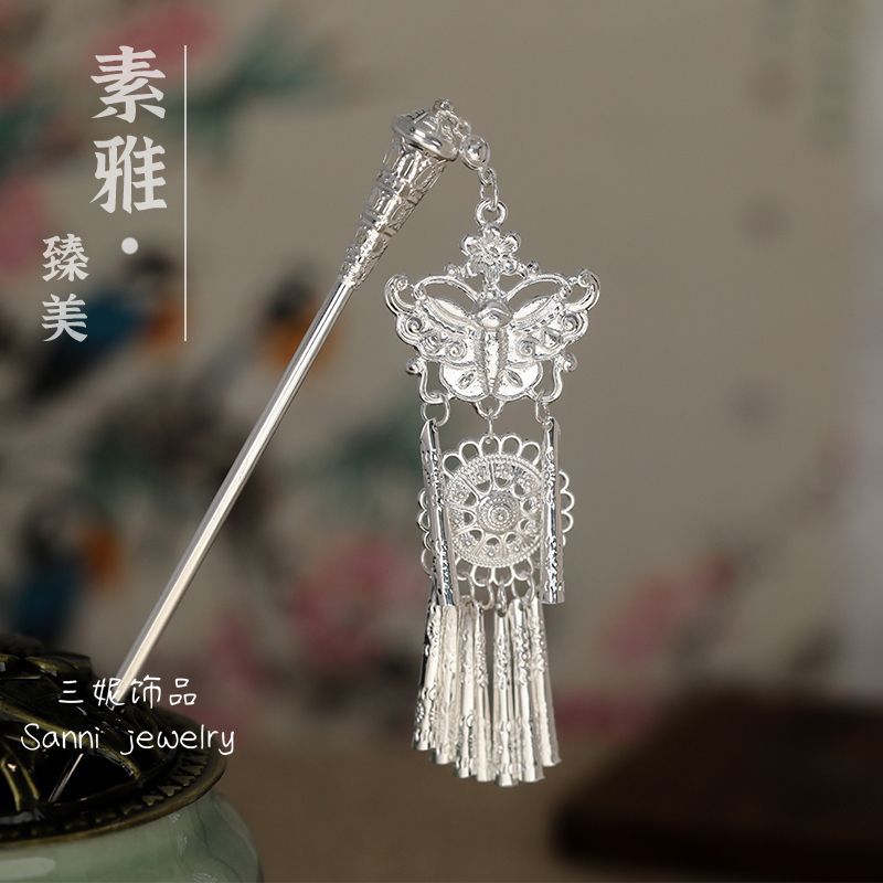 58-silver butterfly tassel hairpin