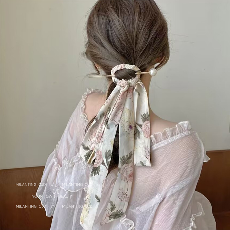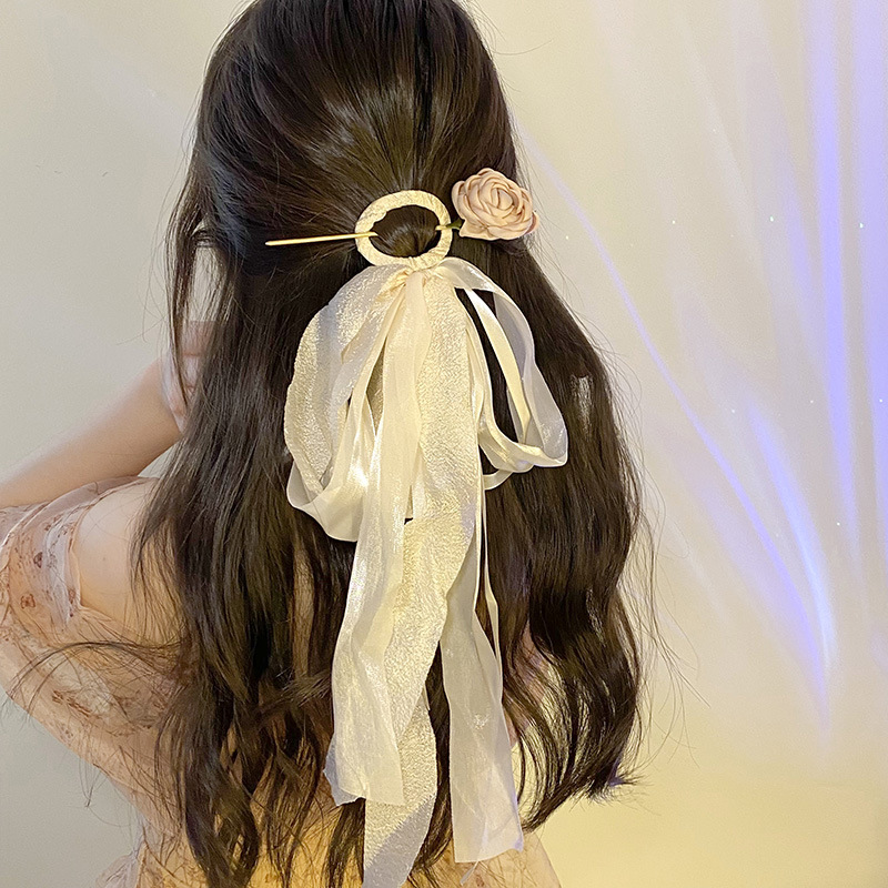 134-camellia ribbon hairpin two-piece set
