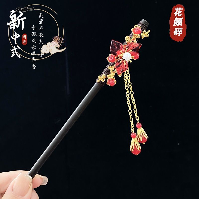 75-red flower hairpin
