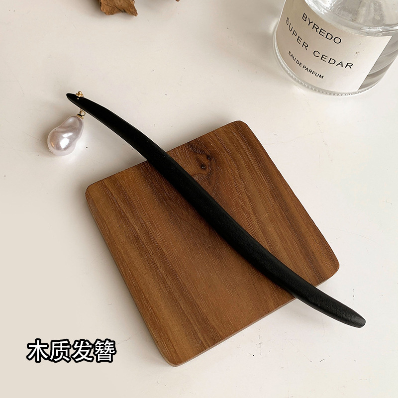 92-pearl black wooden hairpin