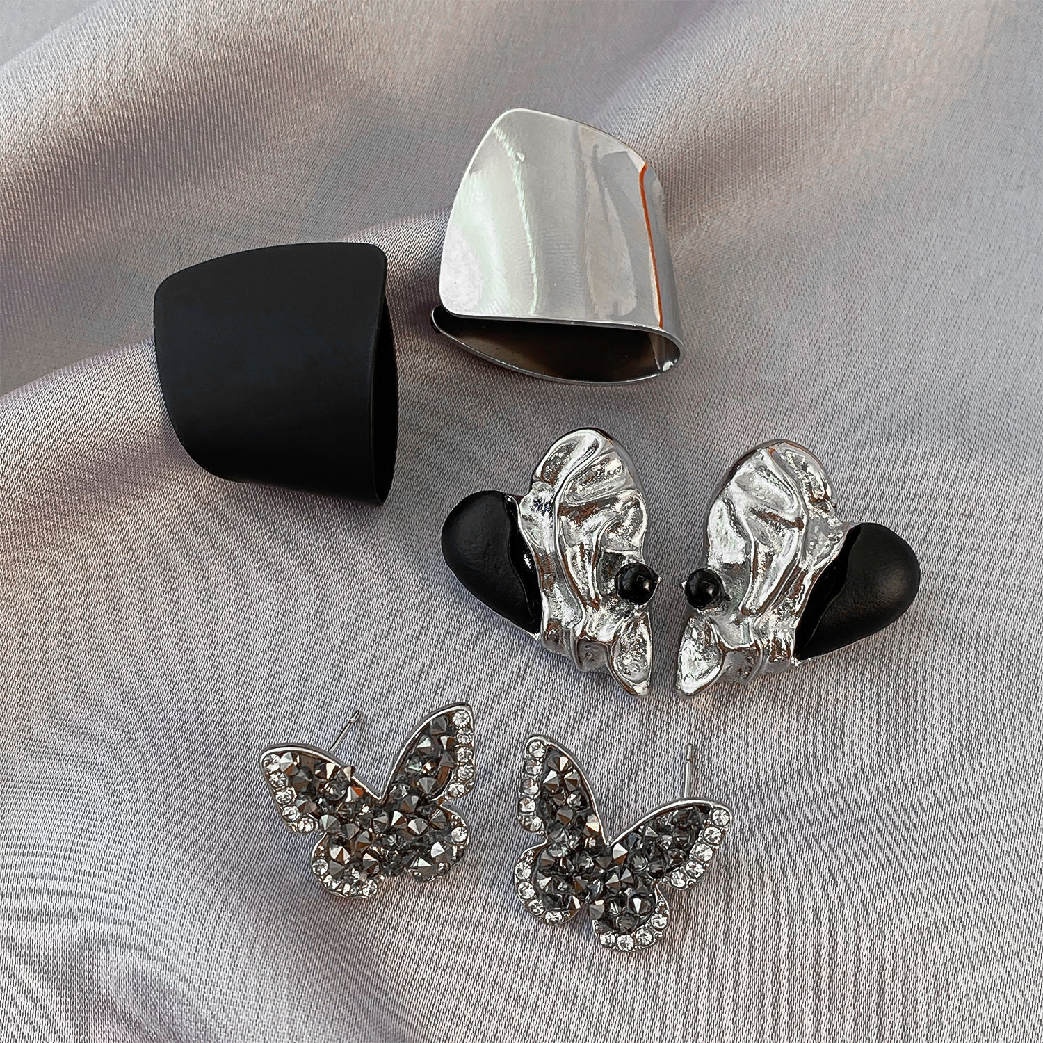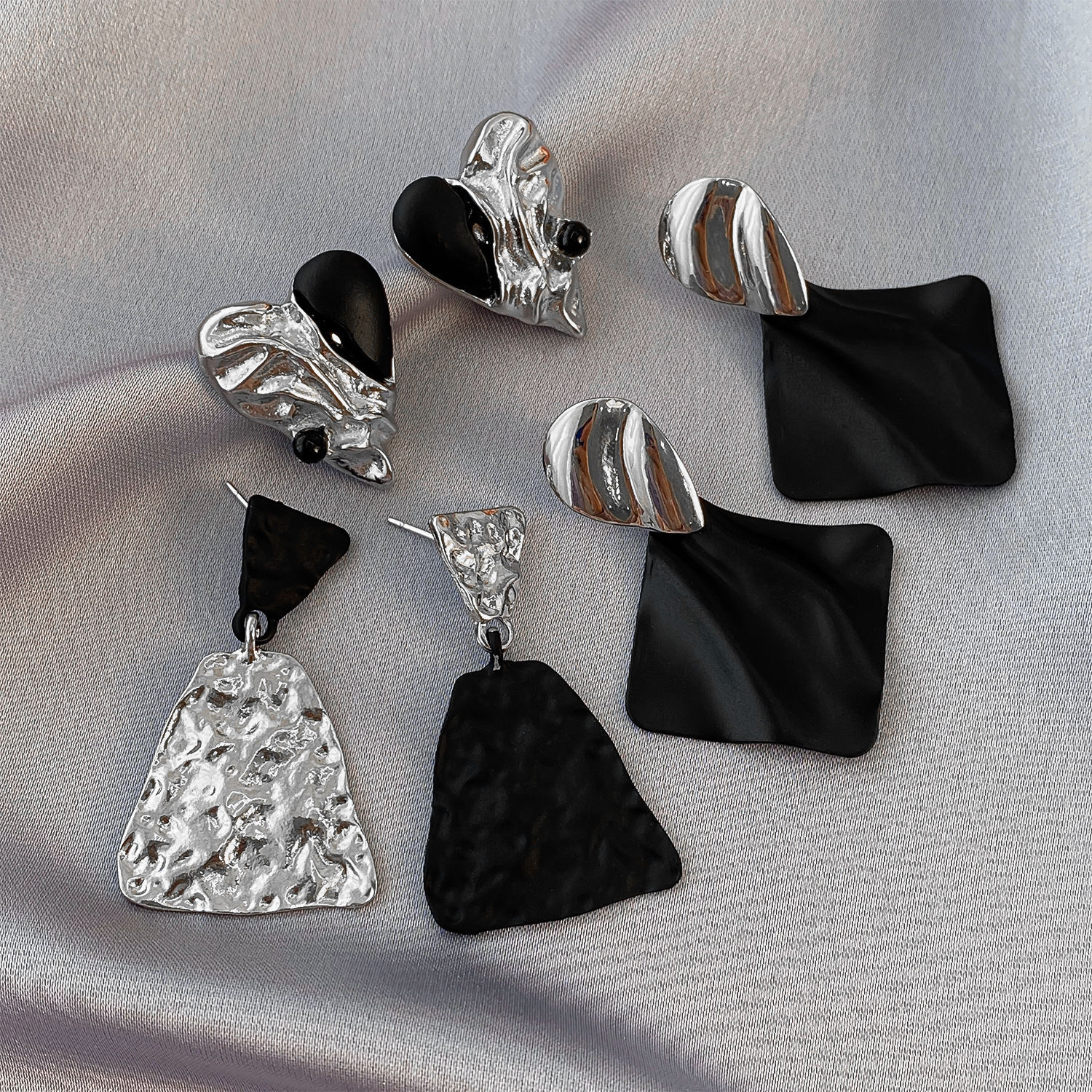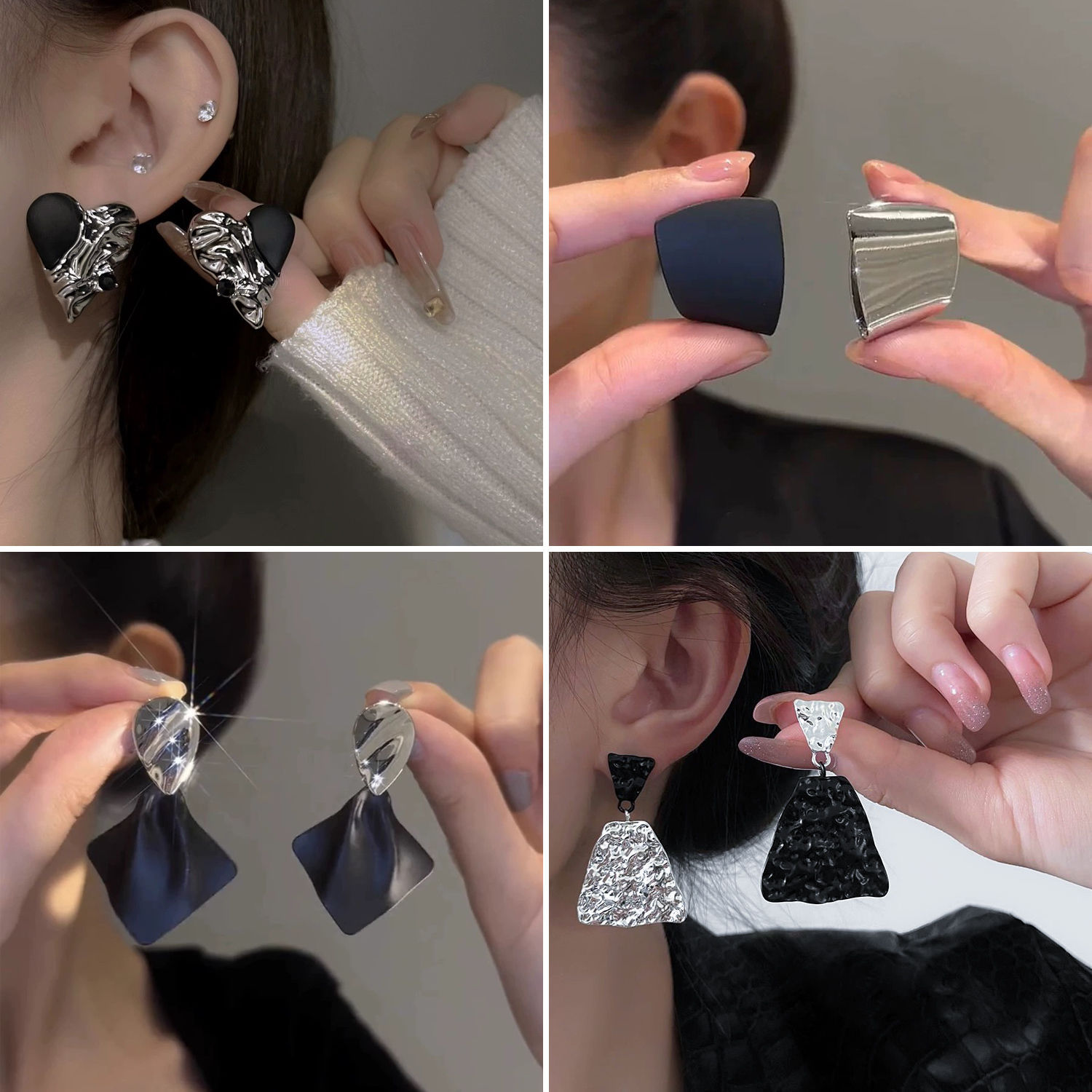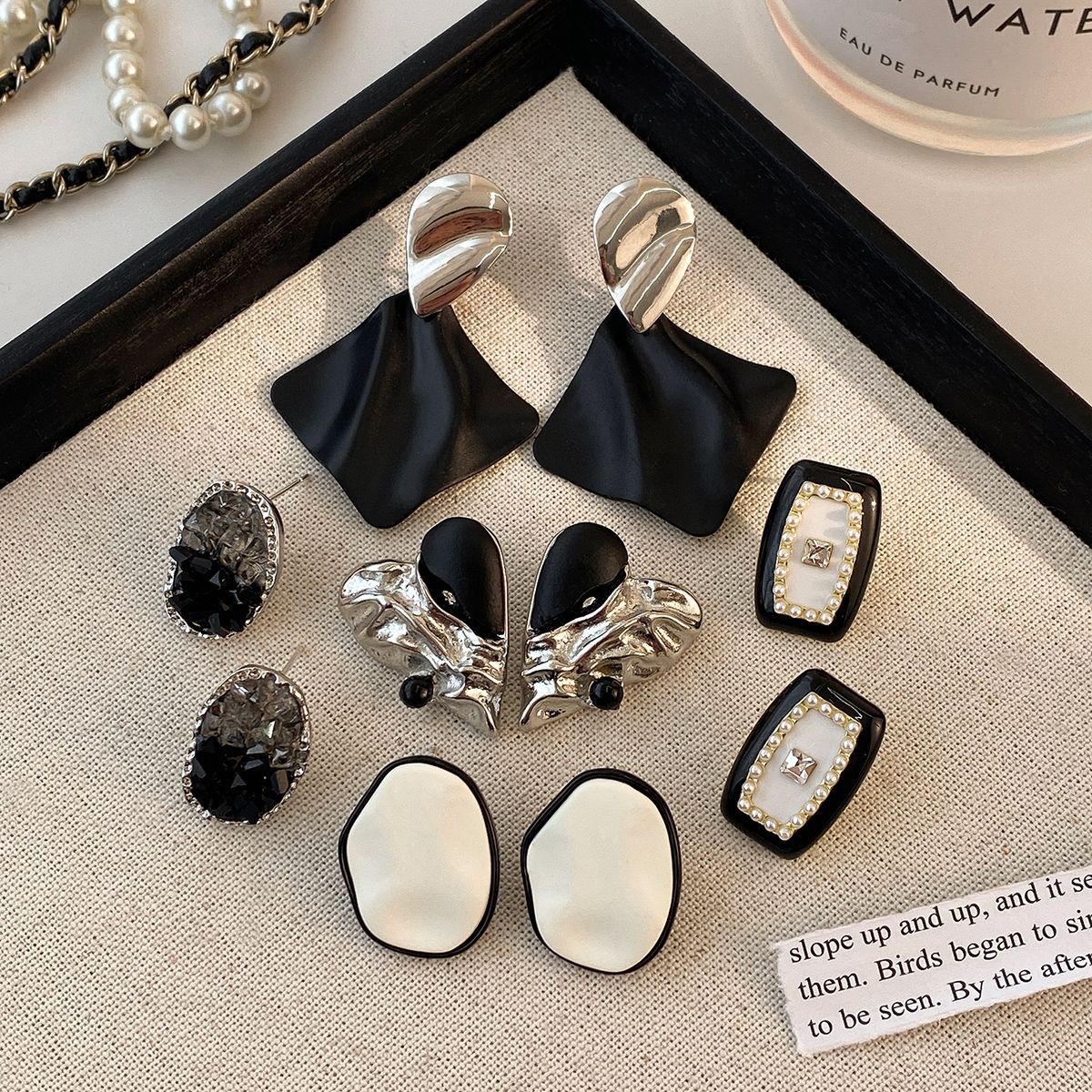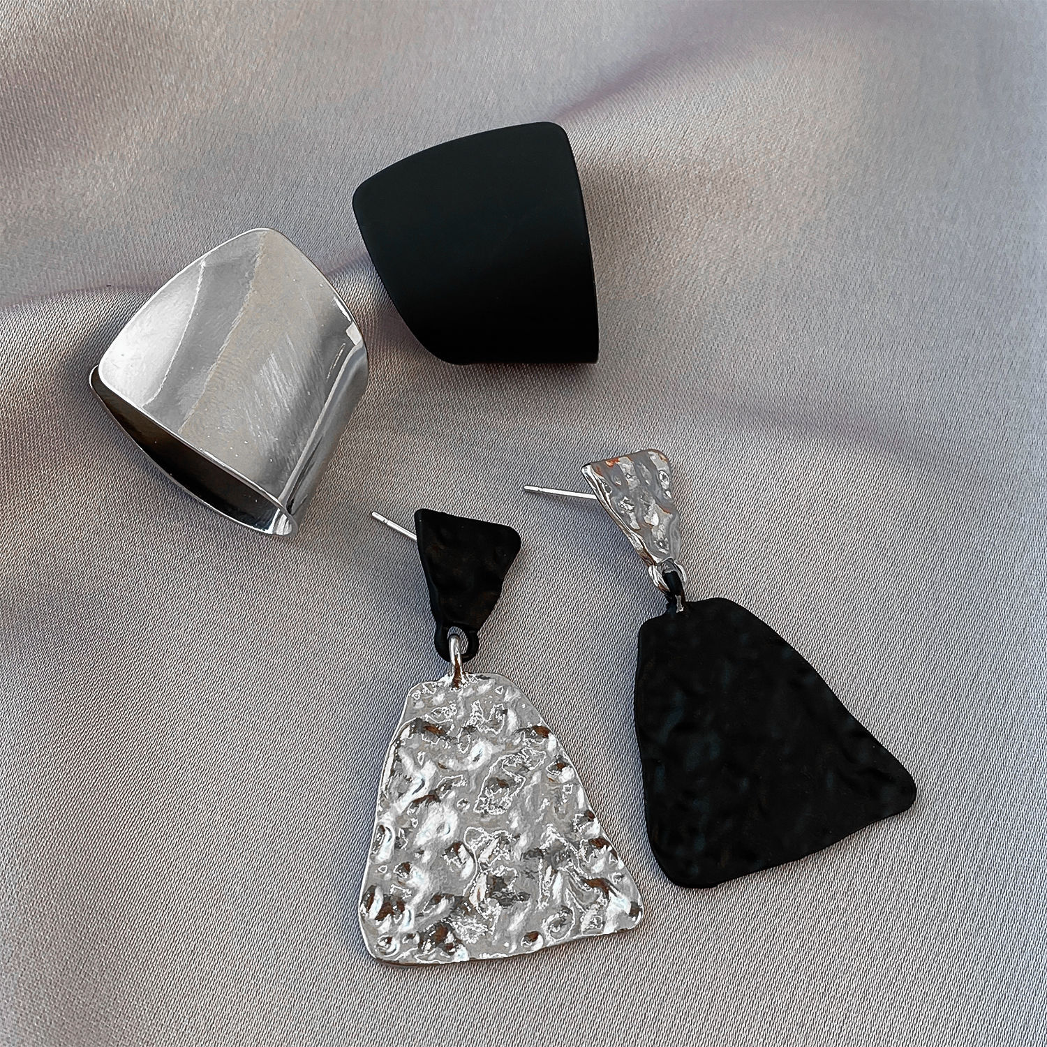 personality silver black asymmetric ear studs-