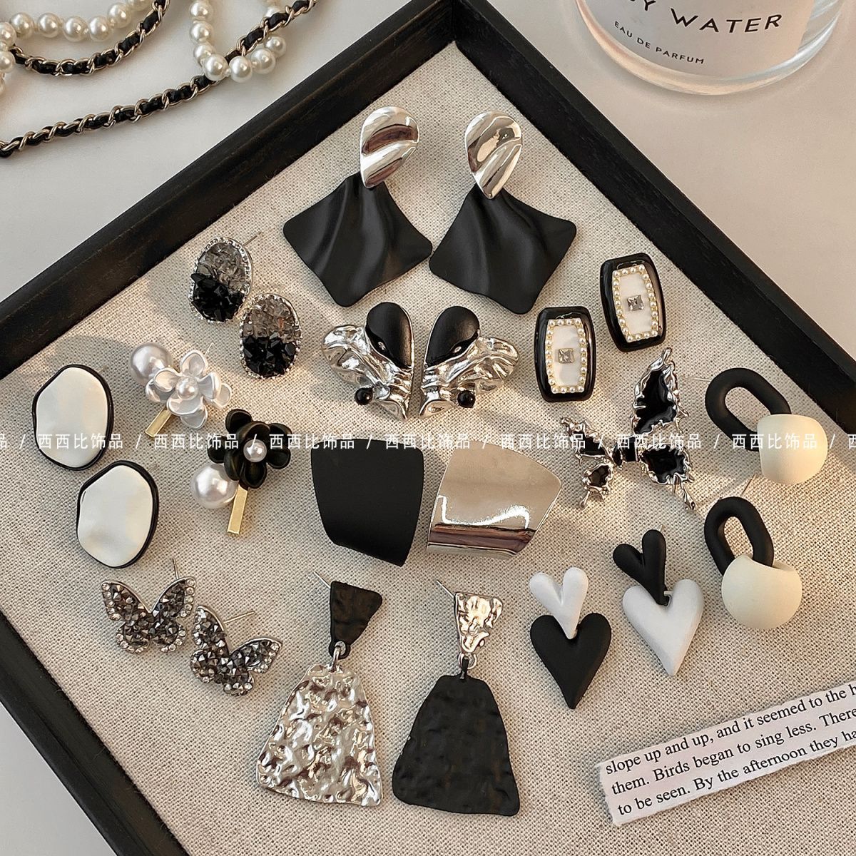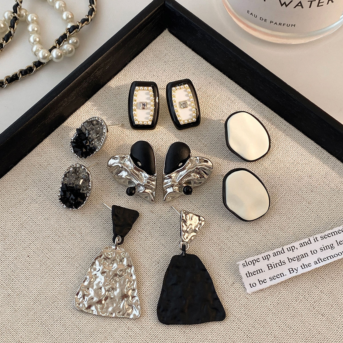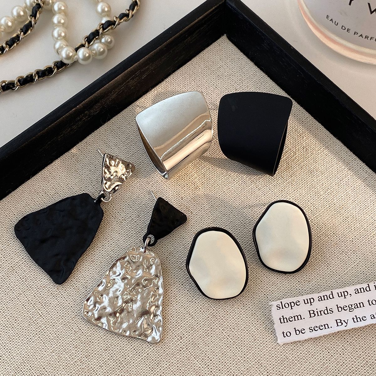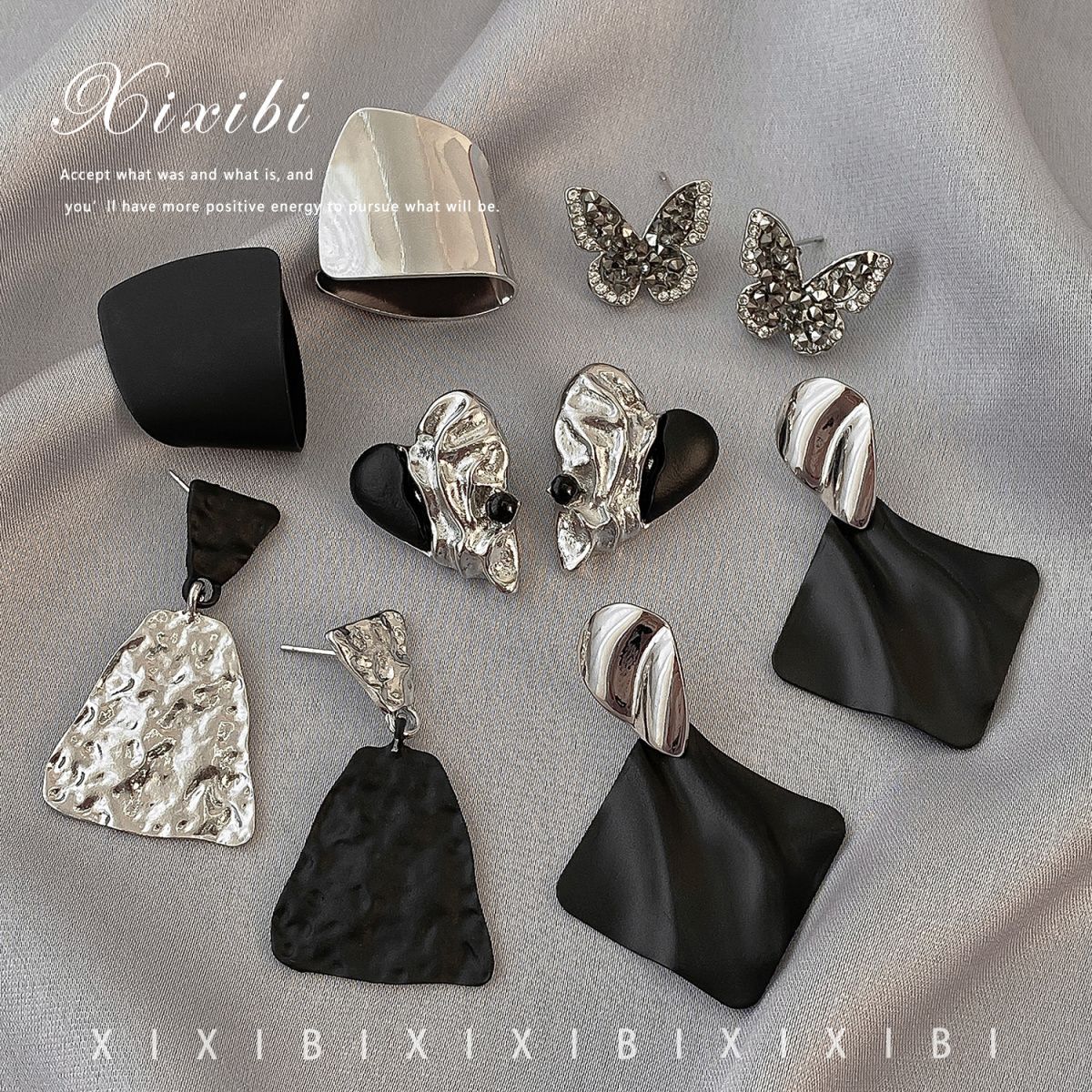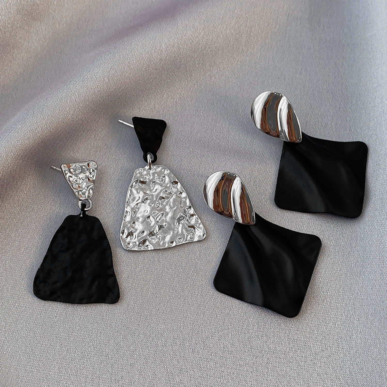 personality silver black asymmetric ear studs-