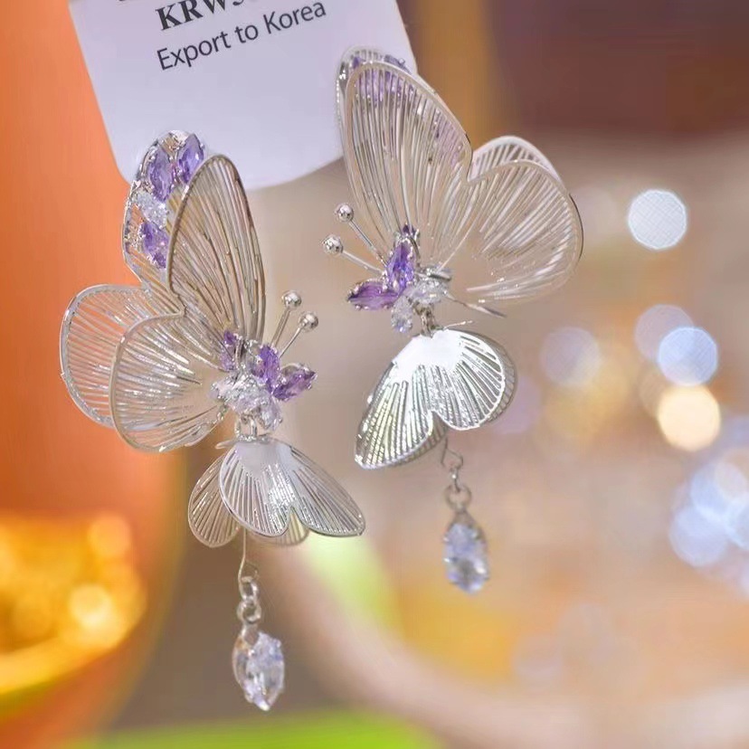 eh109 purple zircon silver stud earrings pair