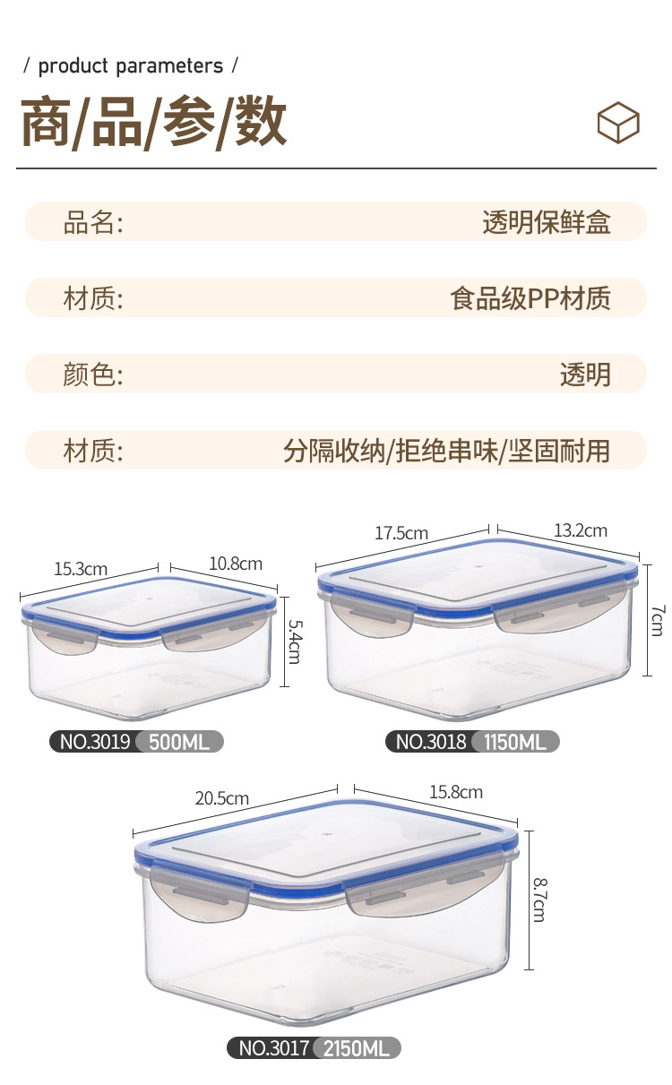 thickened crisper for refrigerator food grade large capacity fruit container rectangular storage box portable clear lunch box
