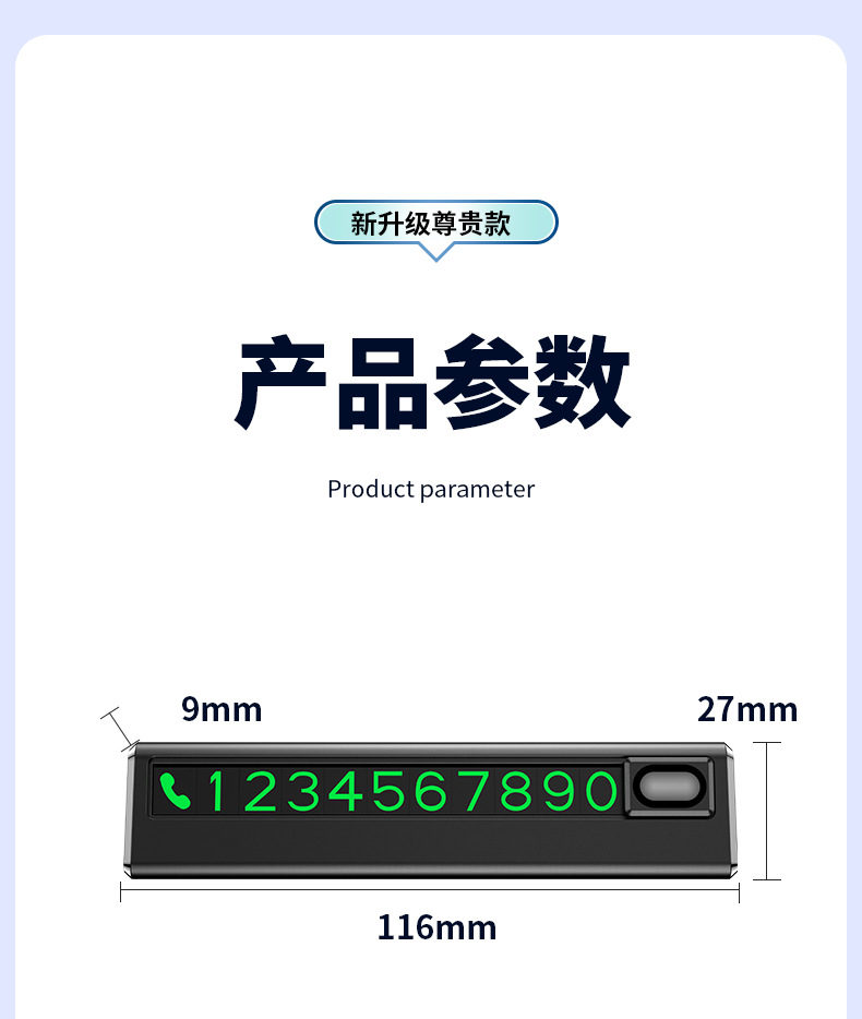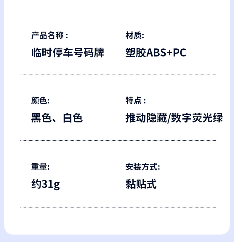 Product Introduction: The hidden sliding number plate for parking can be moved to the left and right. The option is a neutral spot price. If you need to print your brand's business logo or promotional slogans, please contact the customer service for the price. We support small batch customizations and can deliver the fastest in 2 days.