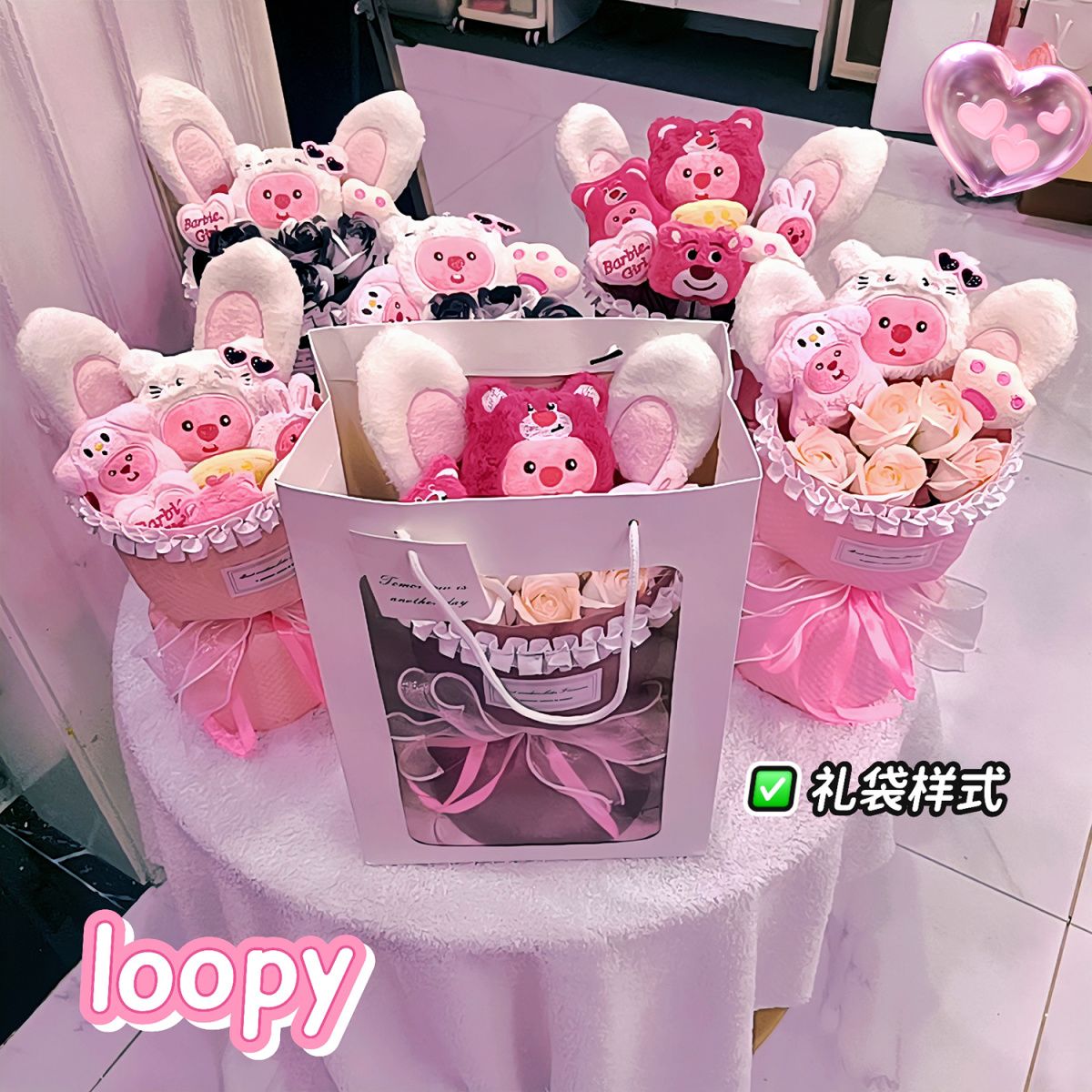 | strawberry bear themed loopy + pink rose + gift bag greeting cards | CN¥ 31.84 | 999999 piece available |