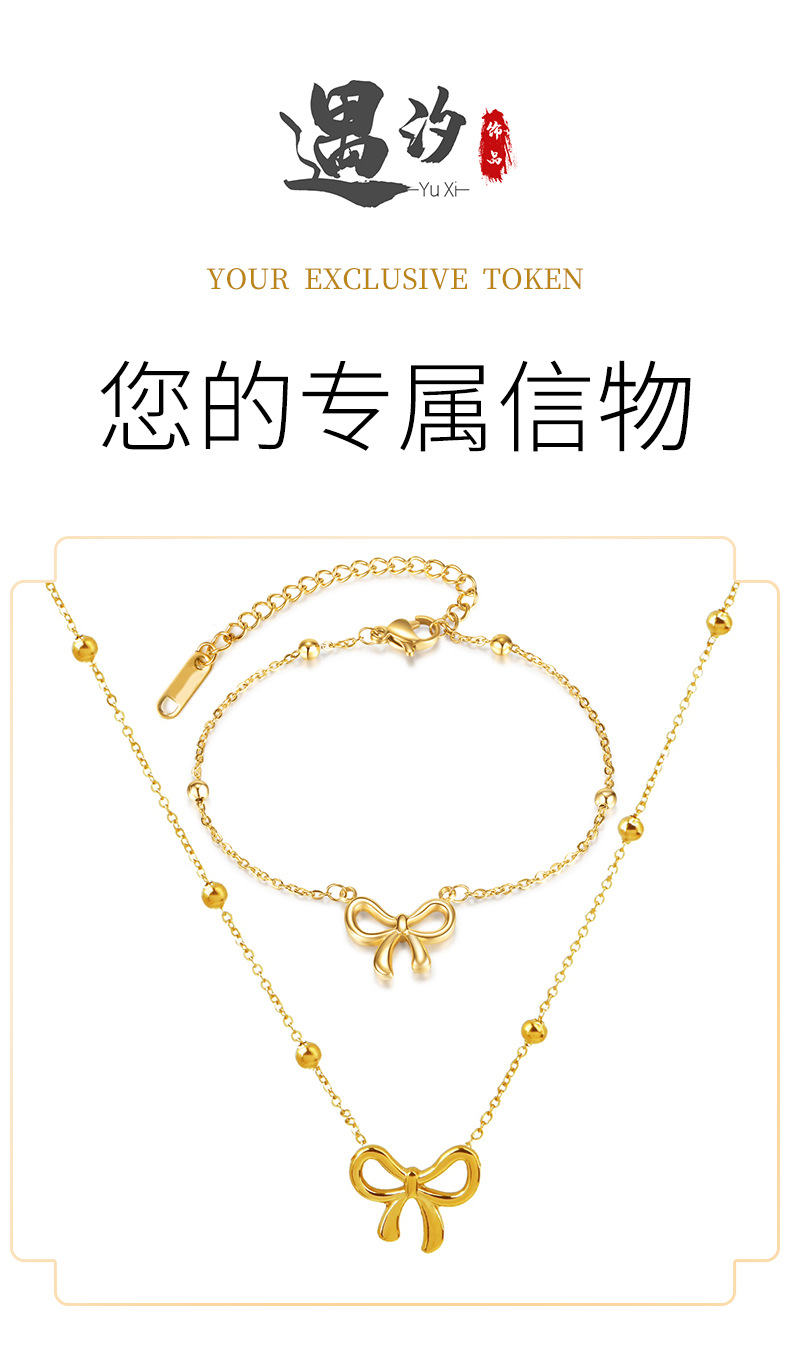 round beads bow necklace steel color