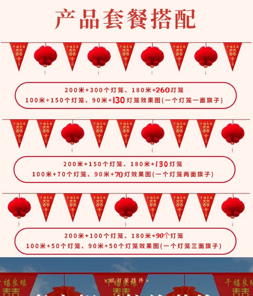 | 180 m hollow xi character flag +130 large lanterns | CN¥ 79.97 | 999999 piece available |