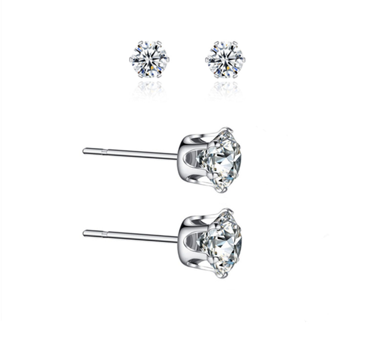 6mm crystal zirconium stud earrings steel color one pair hot sale