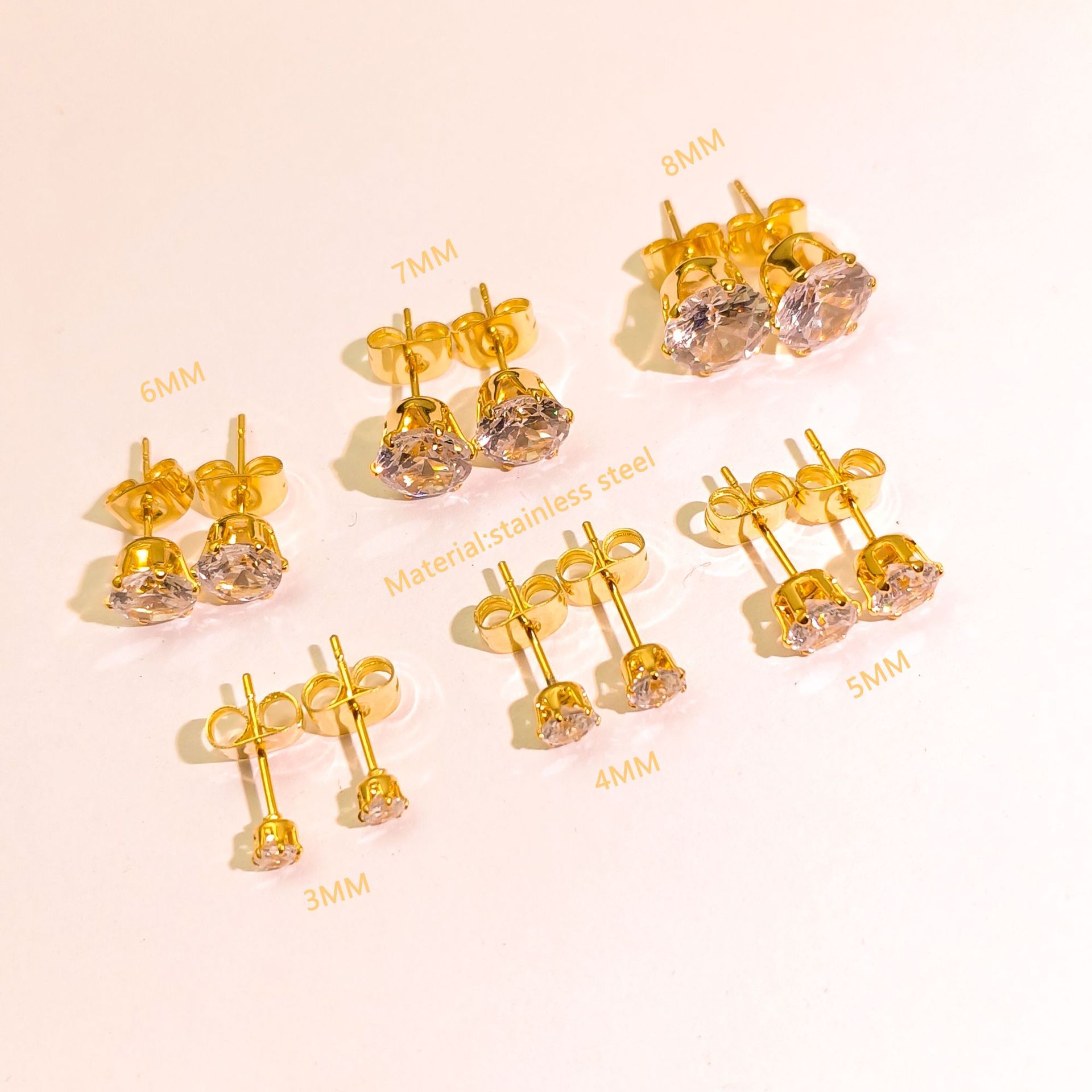 3mm crystal zirconium stud earrings golden pair