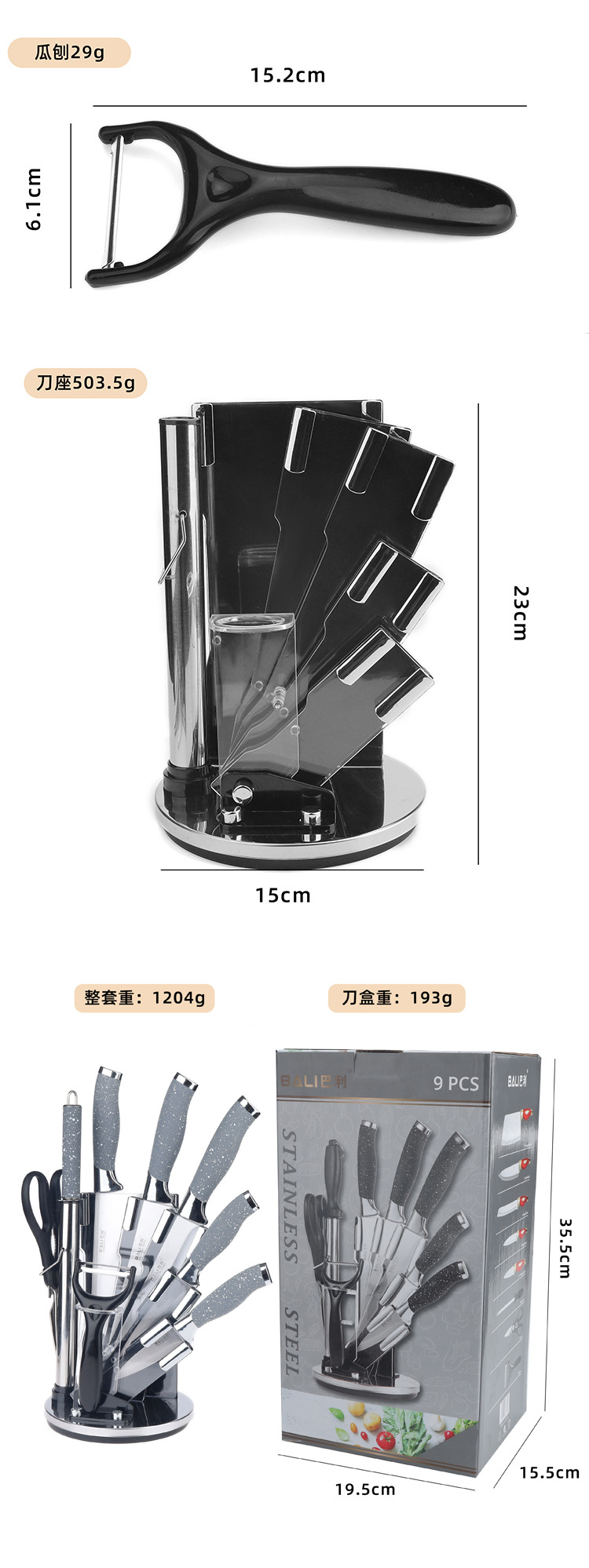 rotating seat silver double plating nine-piece set-gray spray point