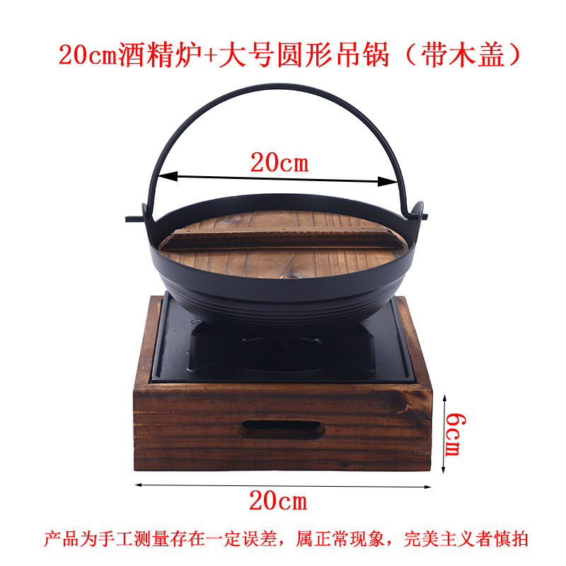 20cm alcohol stove + large round hanging pot (with wooden lid)