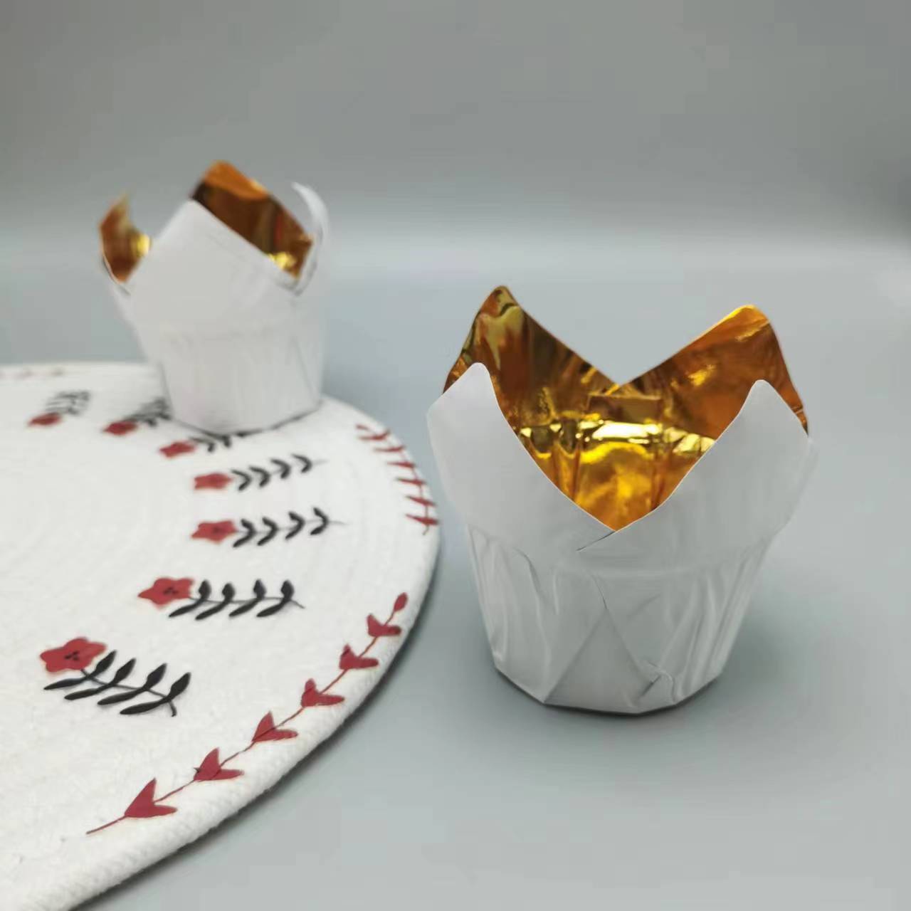 115g (bottom width 50mm height 80mm); outer white and inner gold; egg coated paper