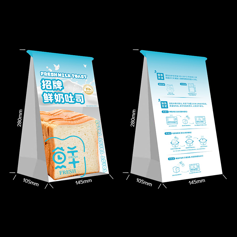 pet/white cotton paper/cpp; brand fresh milk toast bag 280*145 + 105mm