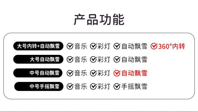 | 80# medium automatic snow + colored lights + music | CN¥ 22.05 | 1028 piece available |