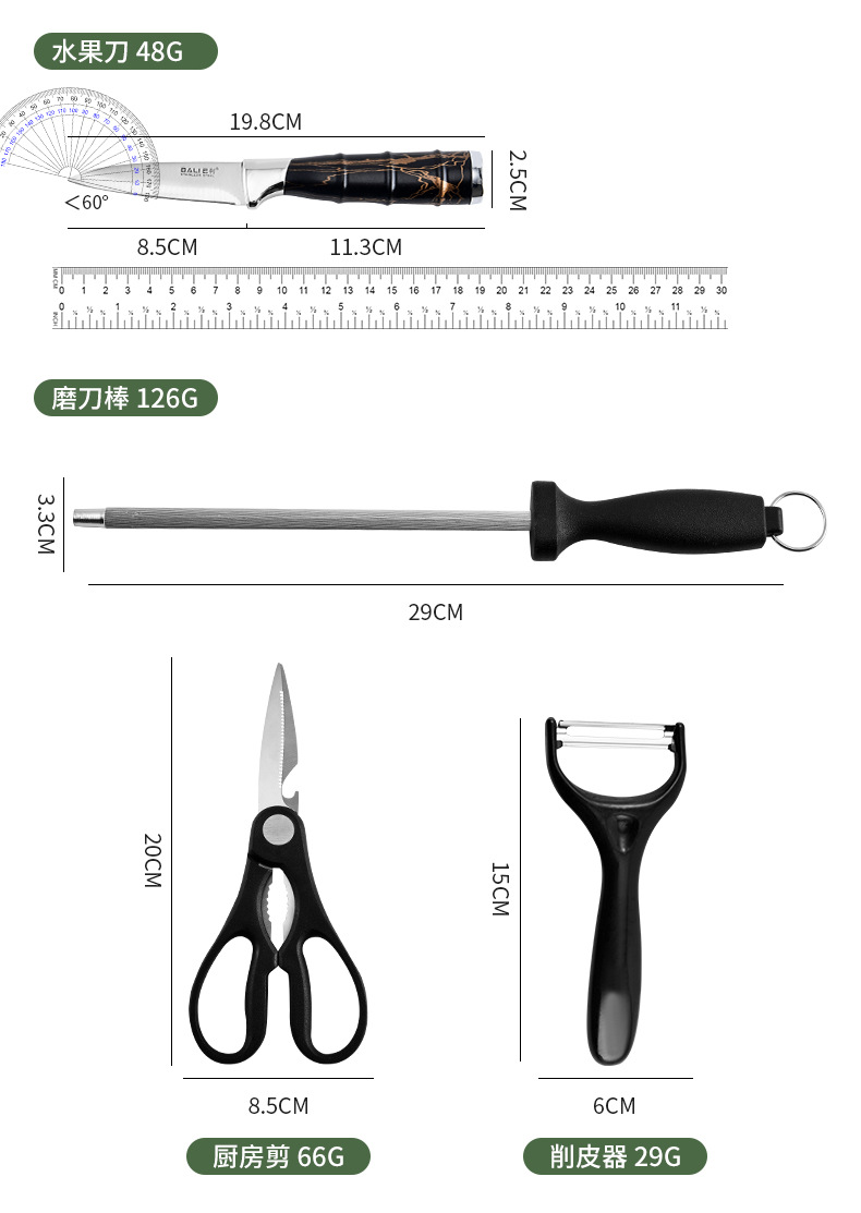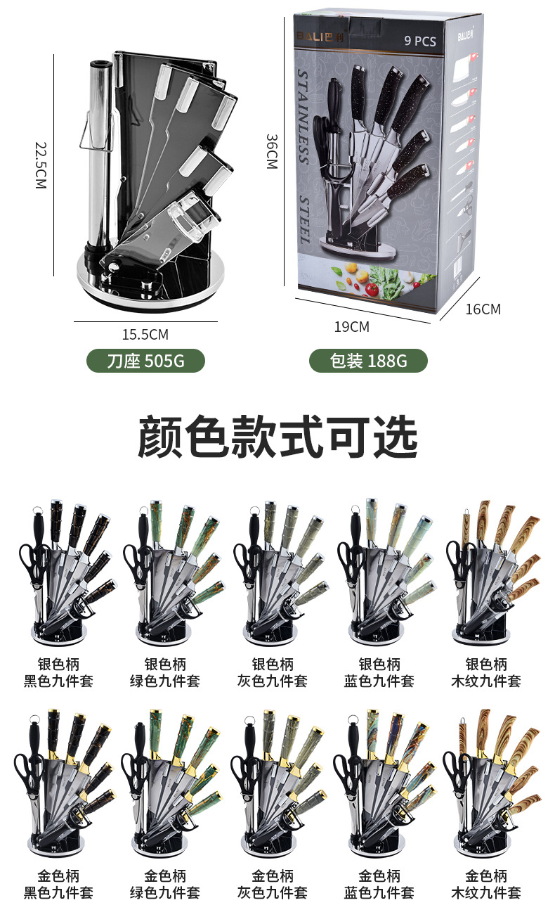 rotating seat bamboo shank silver double plating nine-piece set-black