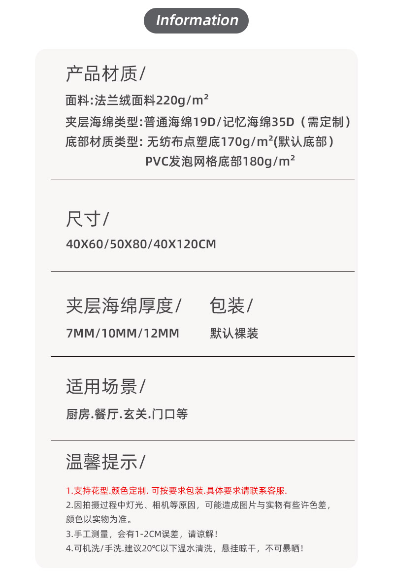 | 40x120cm-12mm thick sponge + non-woven fabric anti-slip dots | ¥12.5 | 2000 pcs available |