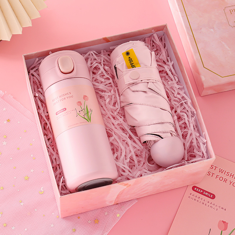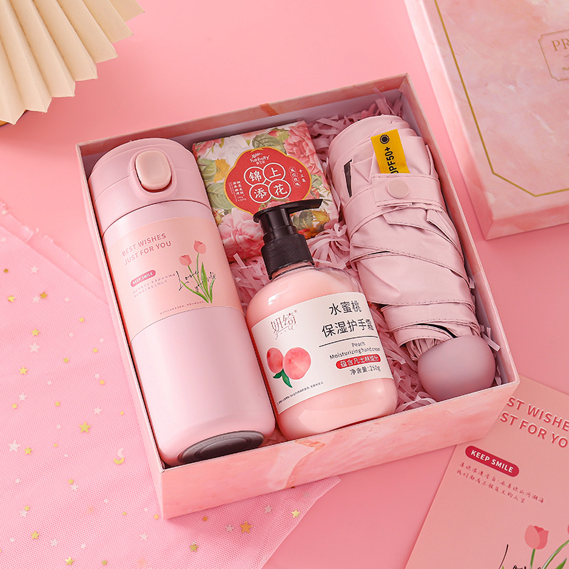 [pink] thermos cup + umbrella + hand cream + soap
