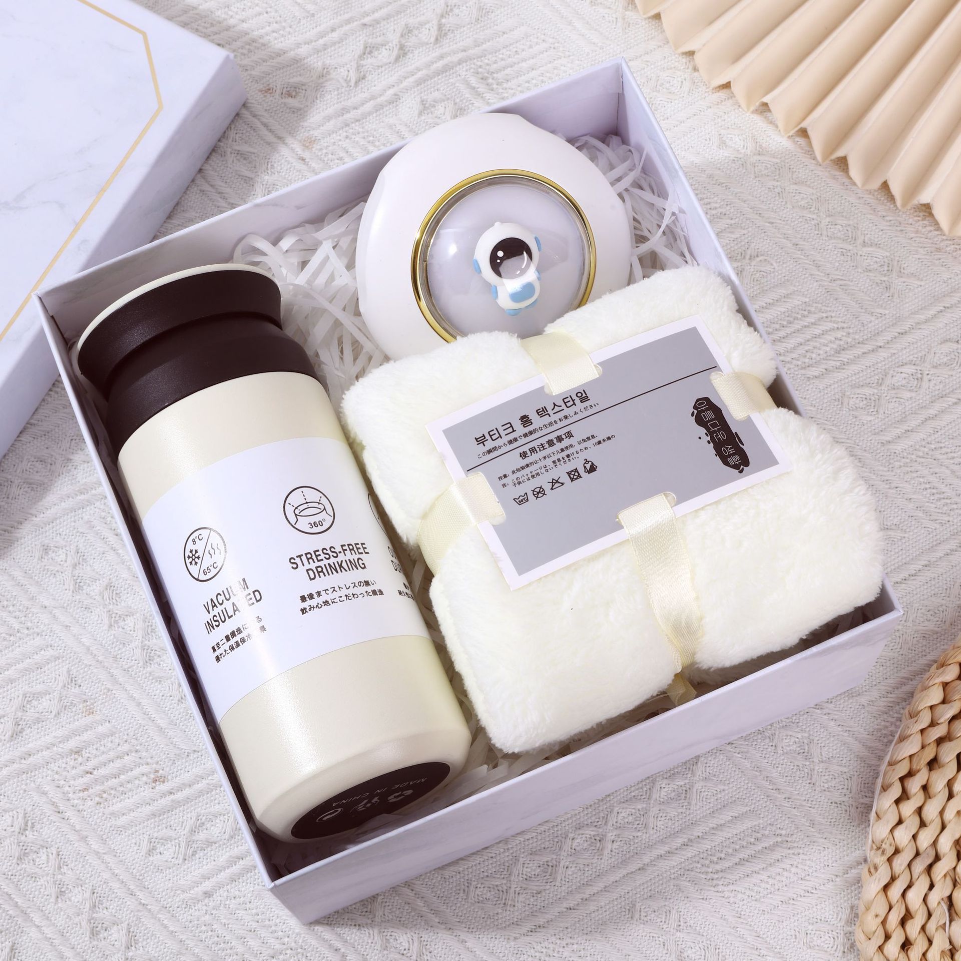 [white] thermos cup + soap + hand cream + aromatherapy + bear towel
