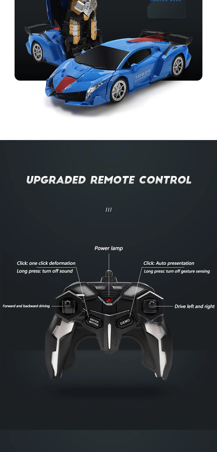 Product Style: | Electronic remote control car toy transformation robot car toy for kids |