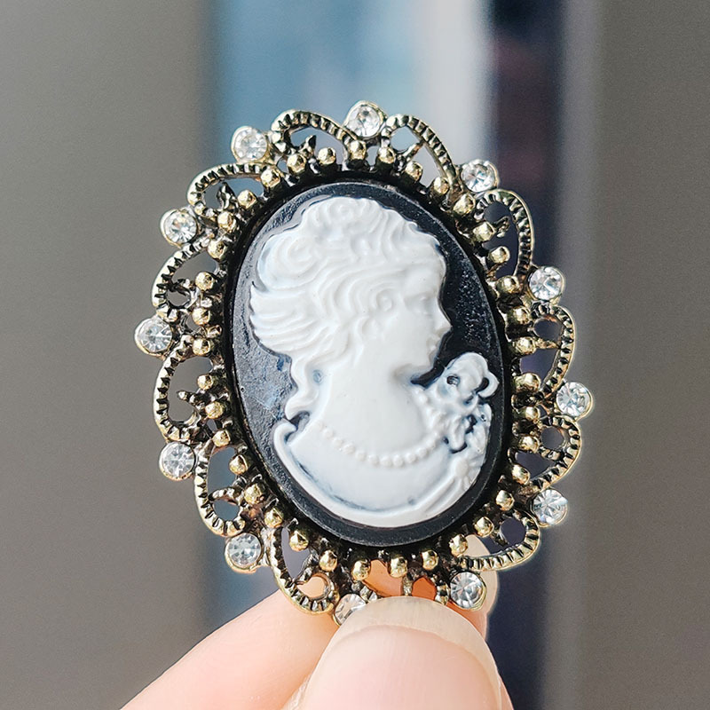 camio beauty head brooch-gray