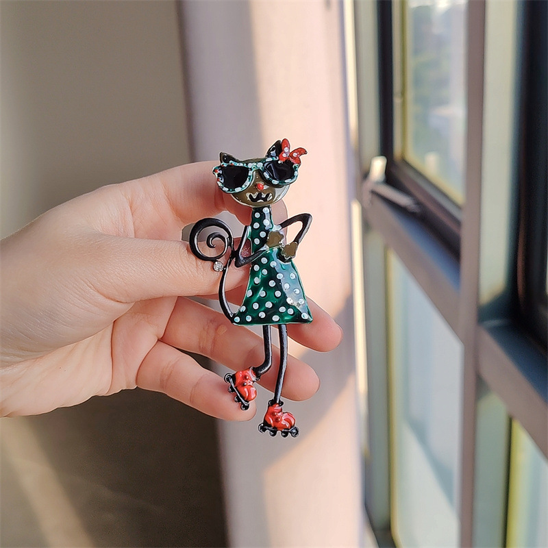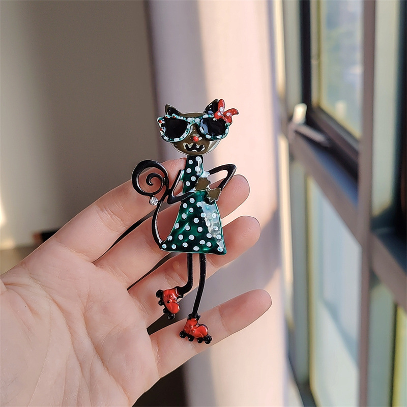 xz0534-2 cute cat with sunglasses-green