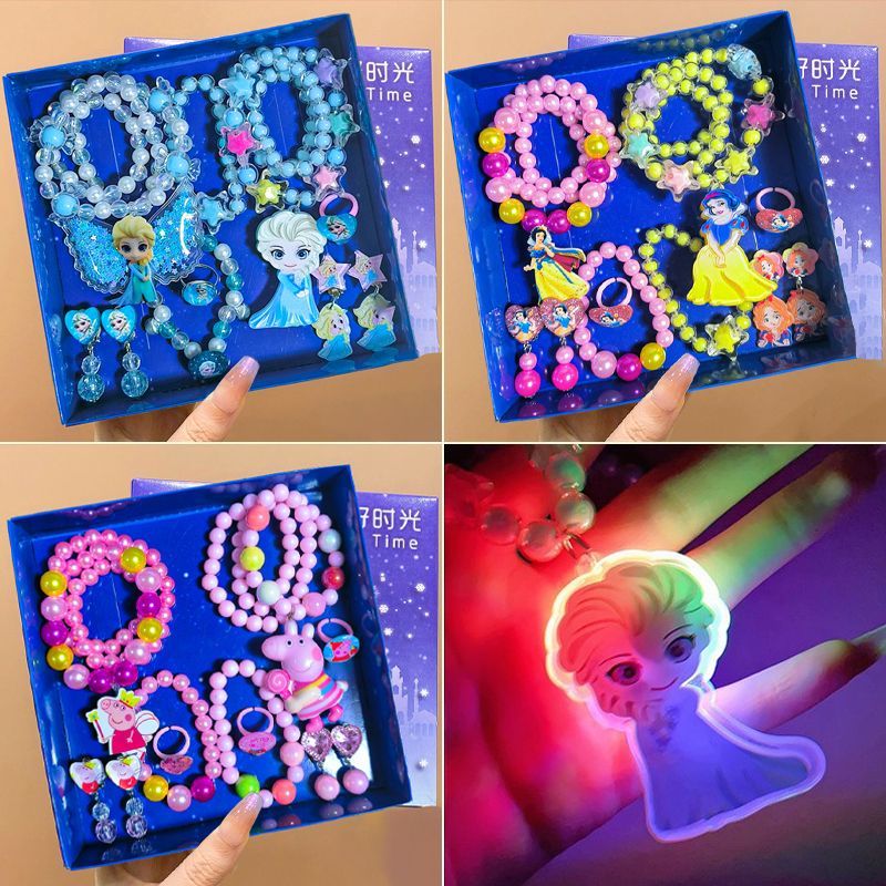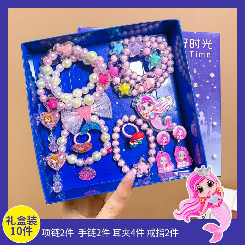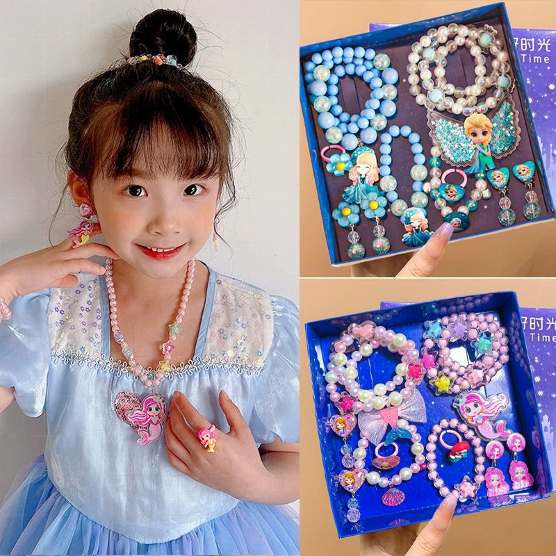 children's necklace bracelet ring suit ice and snow princess elsa ear clip cartoon earrings girls crown jewelry accessories