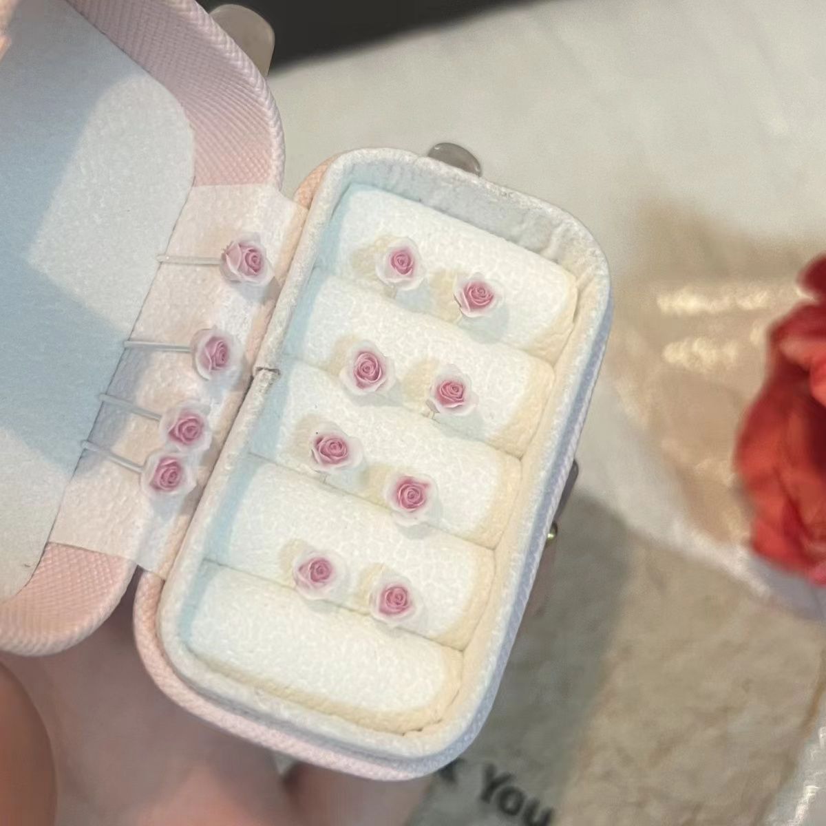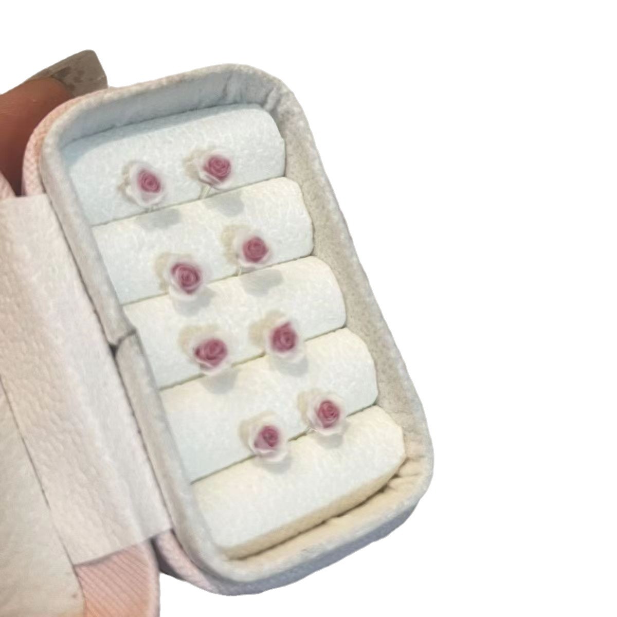 a pair of pink flower ear studs