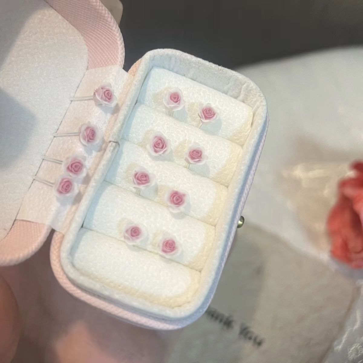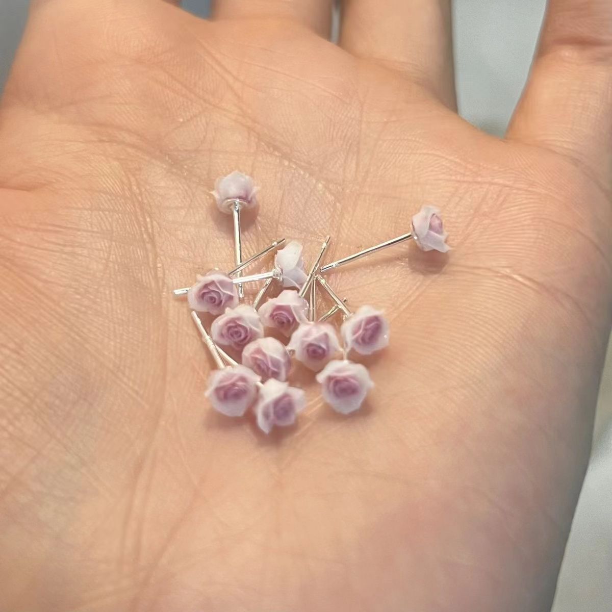 pink flower ear studs single