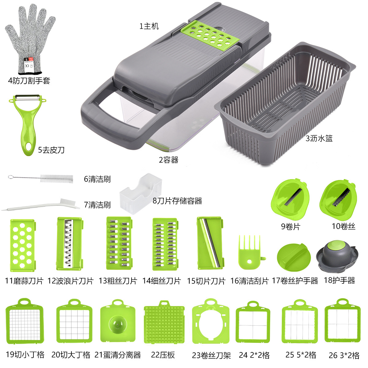 short gray green 26-in-one 6-knife