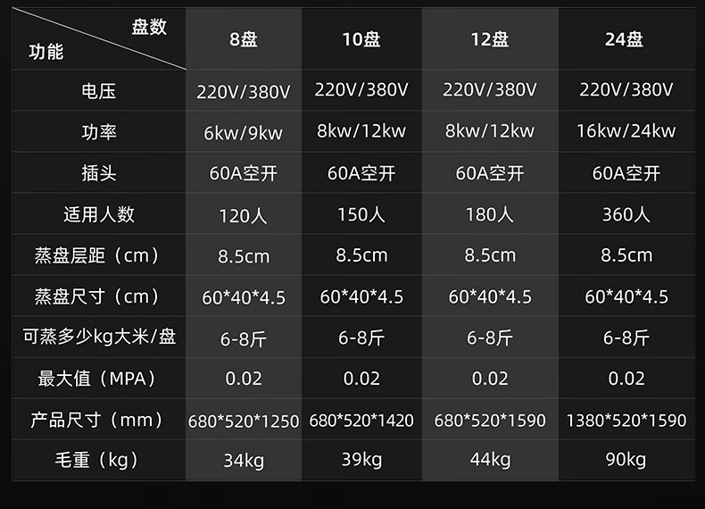 big eight plates | available for 120 people | top timing | 380v