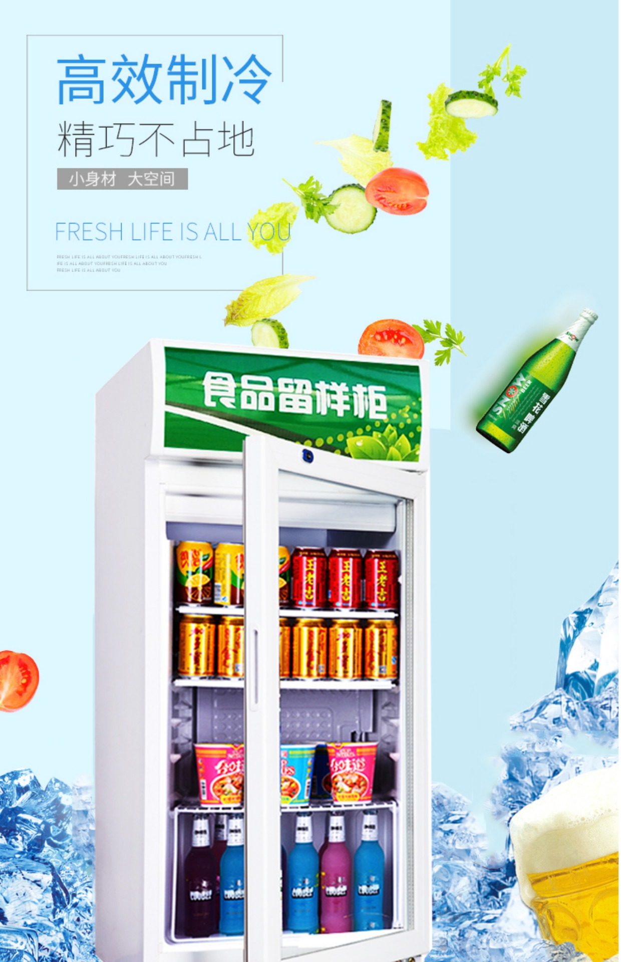 single door aluminum alloy air cooling frostless-free design stickers