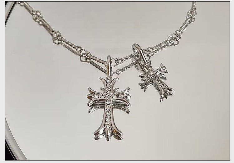 silver double cross necklace 2025-22
