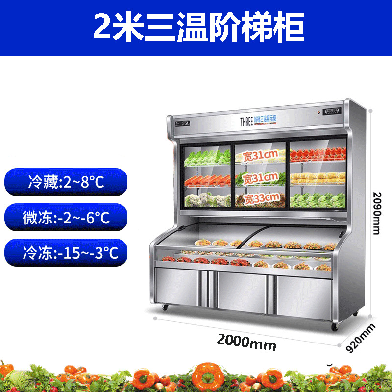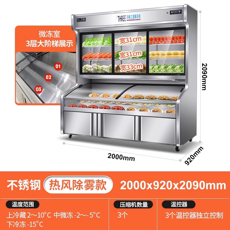2.0 m stainless steel three temperature ladder cabinet-three temperature three control-three compressor