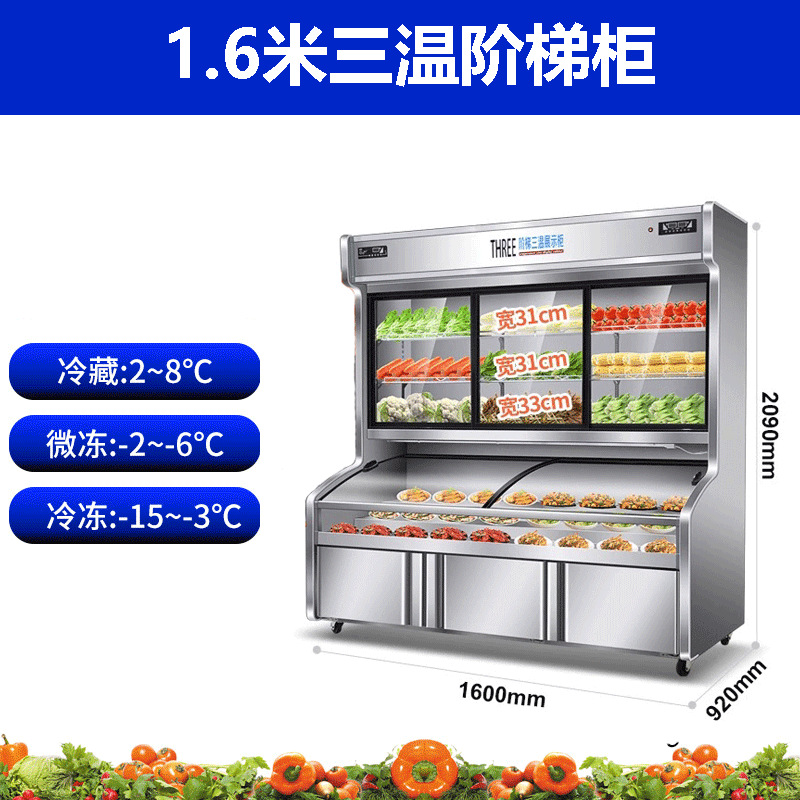 1.6 m stainless steel three temperature ladder cabinet-three temperature three control-three compressor