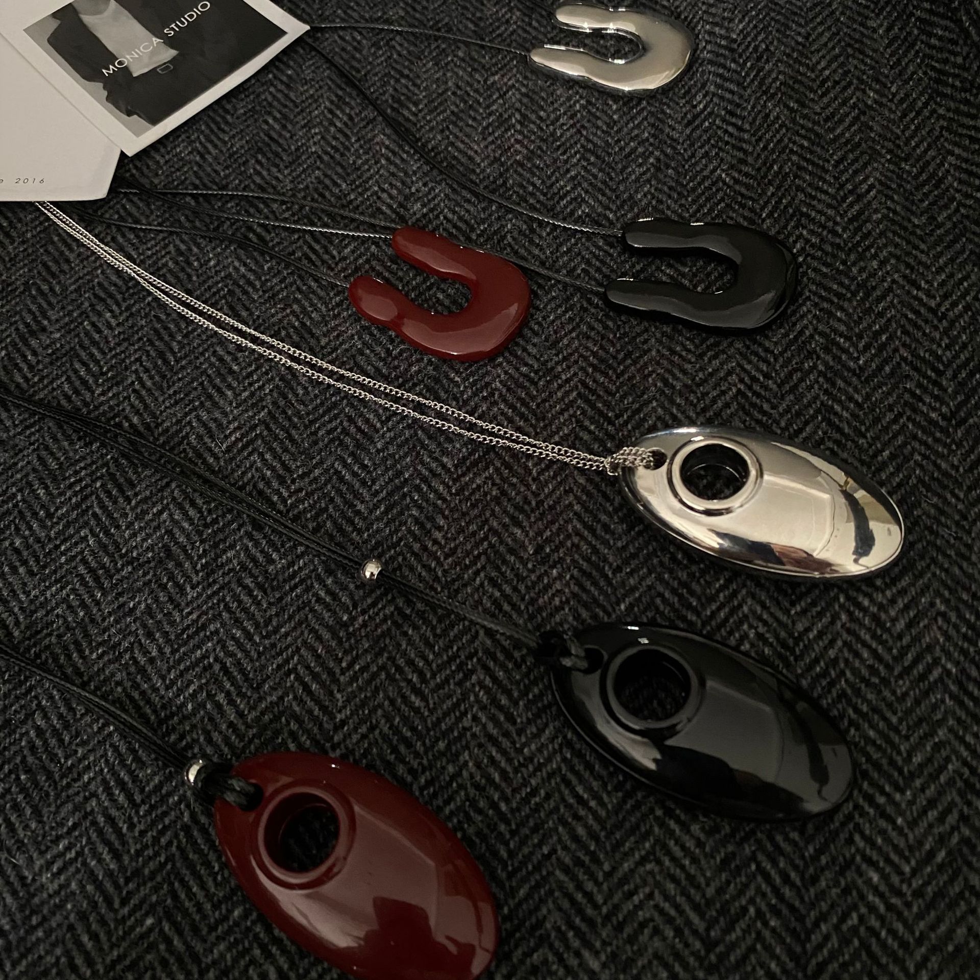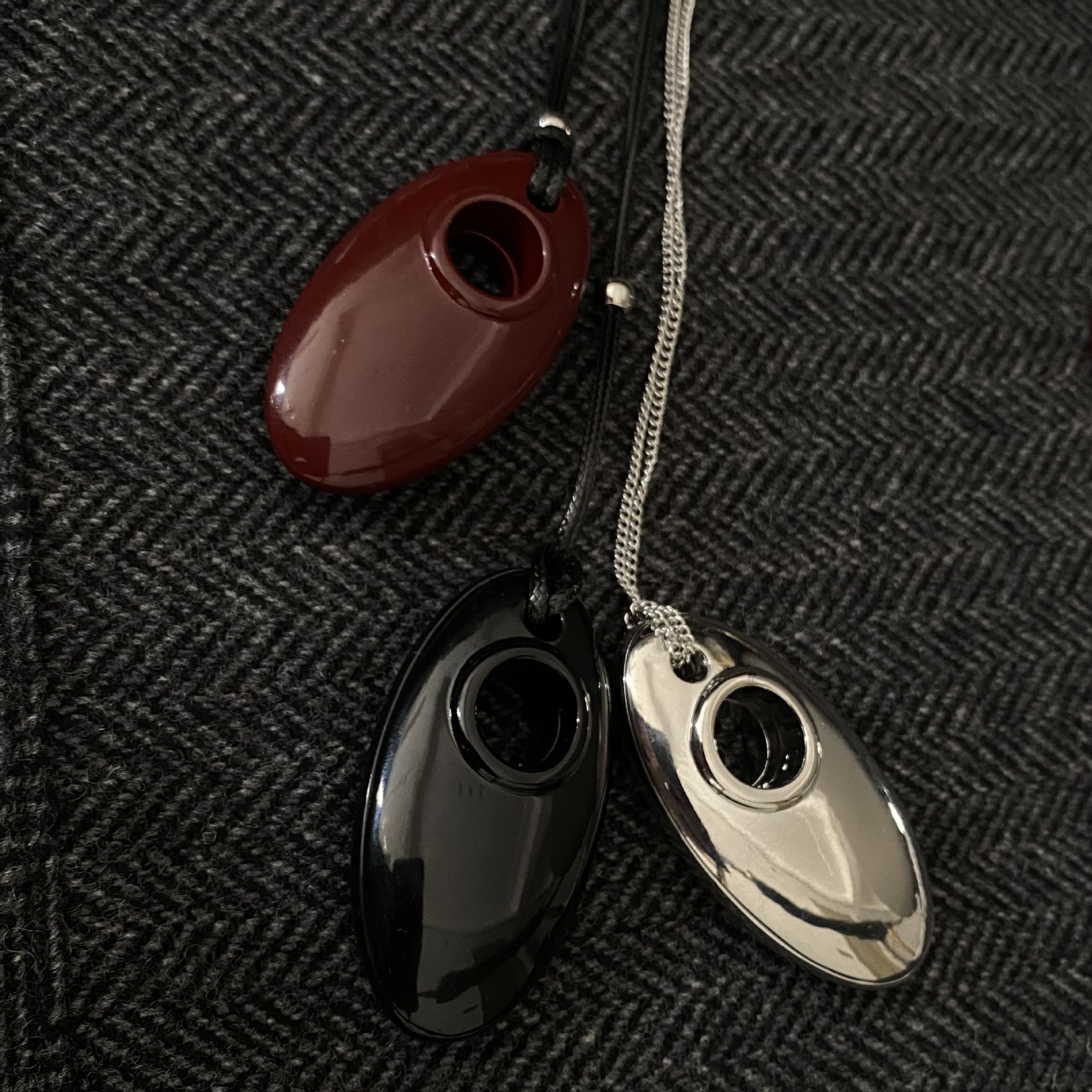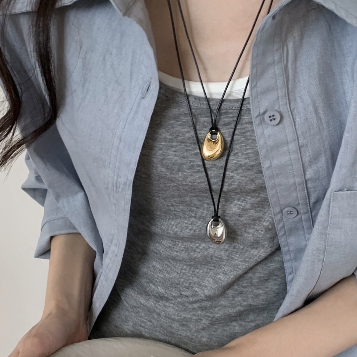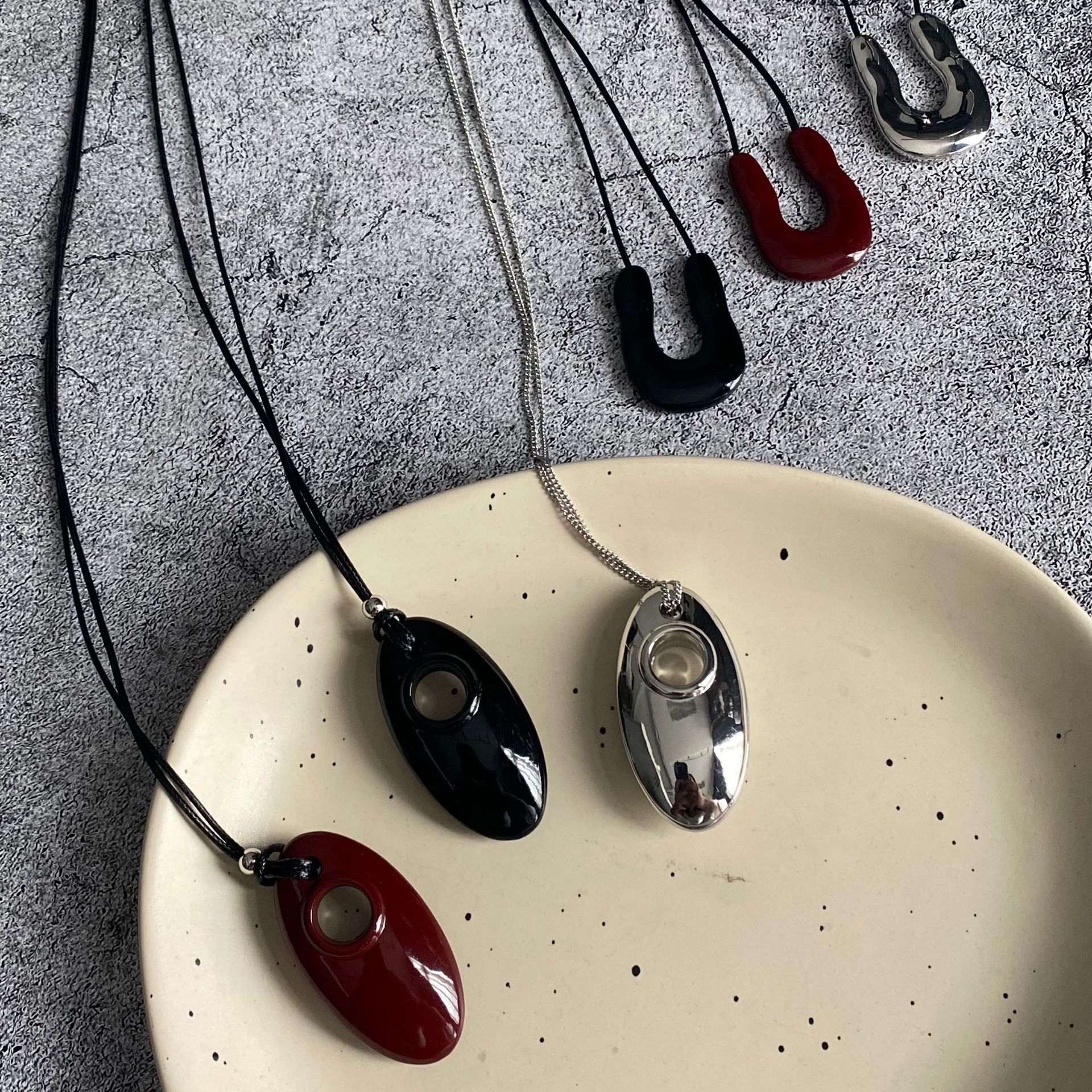 black metal oval black rope necklace